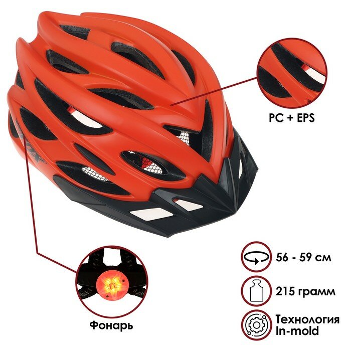 Шлем велосипедиста BATFOX J-792, р. 56-59 см, цвет оранжевый информация: