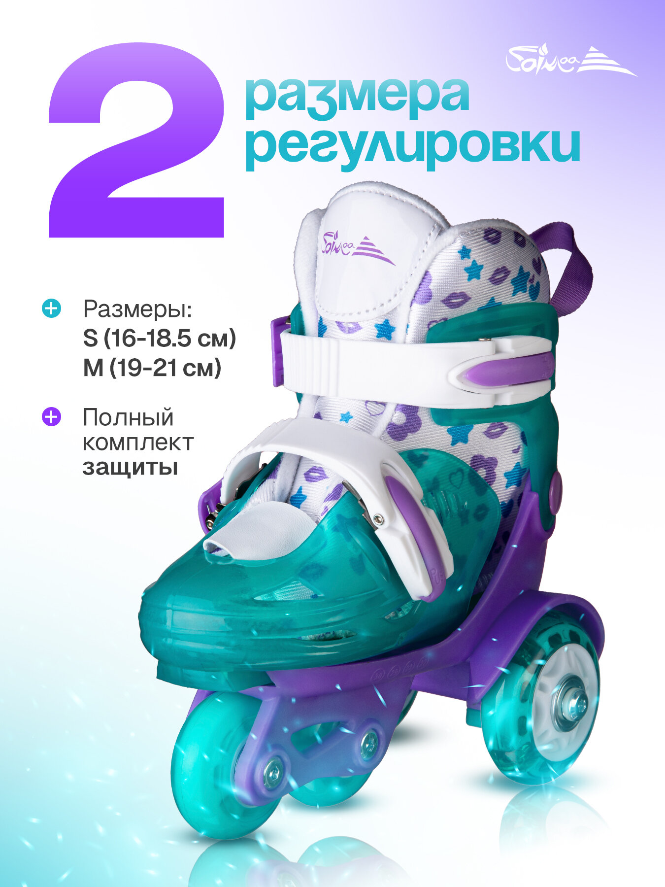 10 цен на Ролики раздвижные с защитой квады Liberty, размер 27-30, цвет фиолетово-зеленый