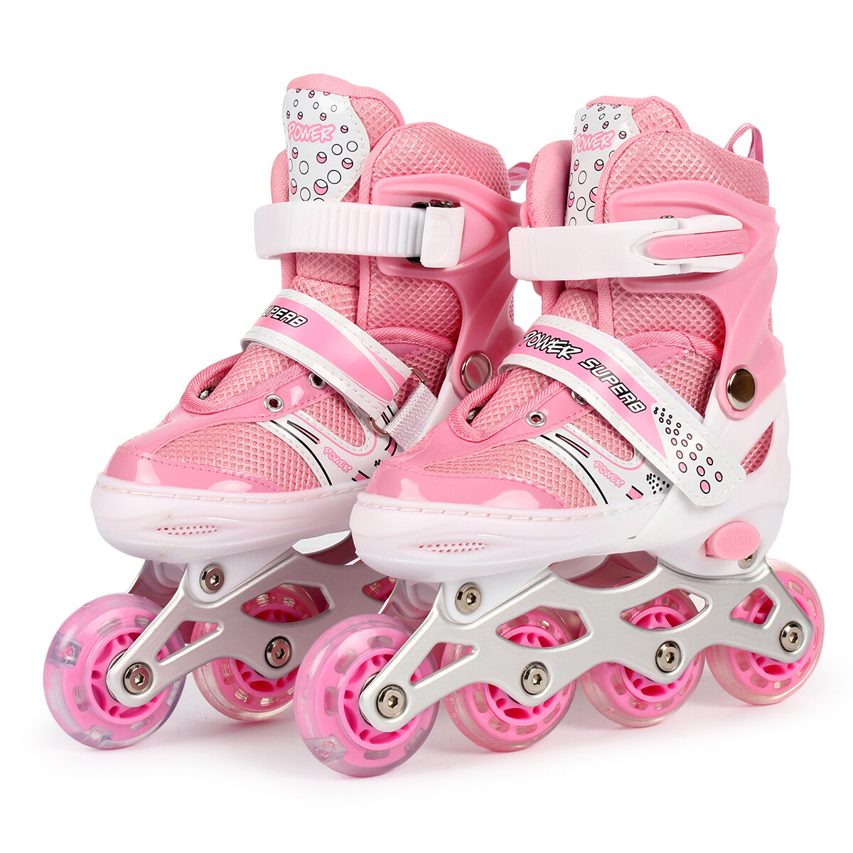 10 цен на Ролики раздвижные для детей и подростков, светящиеся колеса, размер 31-34, детские роликовые коньки, колеса ПВХ, цвет розовый – 1 пара