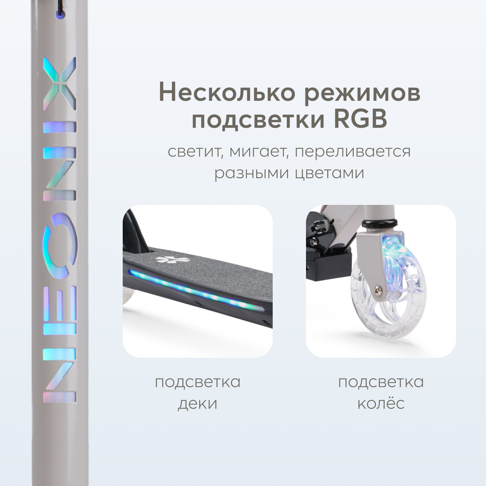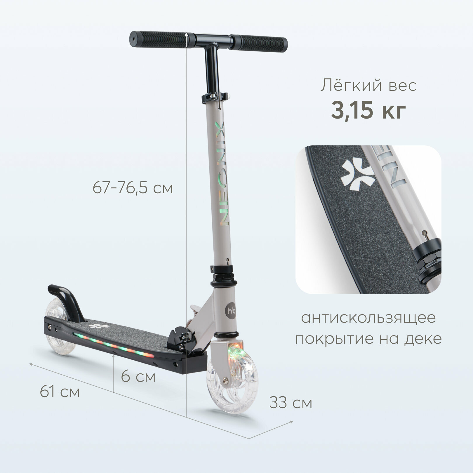 50036, Самокат Happy Baby NEONIX, со светящимися колесами, высота руля регулируется, серый информация: