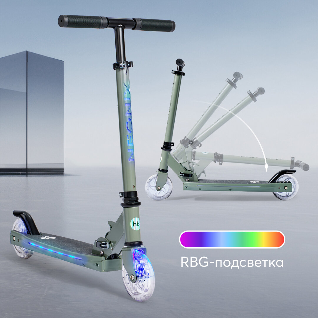 50036, Самокат Happy Baby NEONIX, со светящимися колесами, высота руля регулируется, темно-зеленый 5 499 ₽