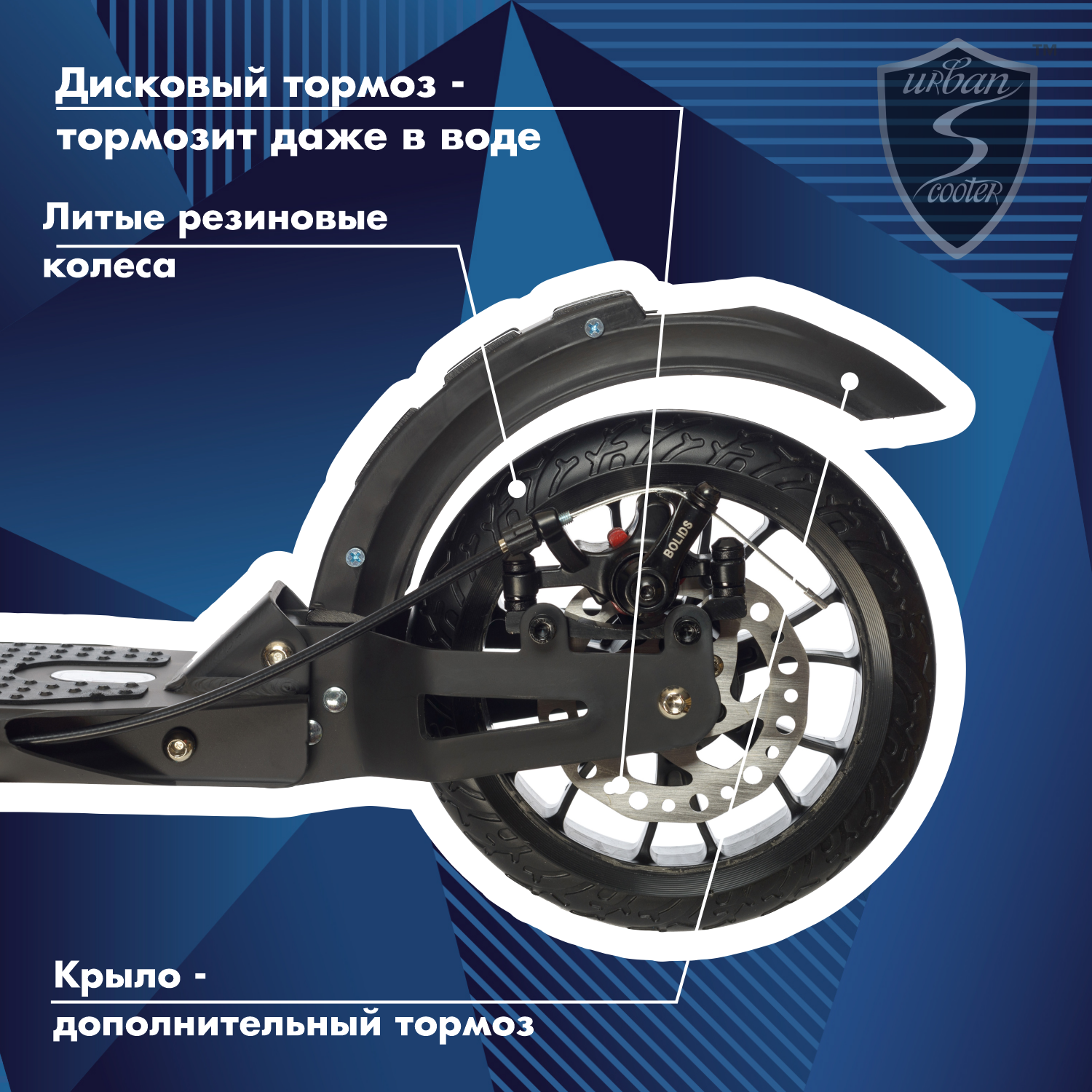 Самокат Urban Scooter Disc Black, с дисковым тормозом, складной, городской, двухколесный 7 990 ₽