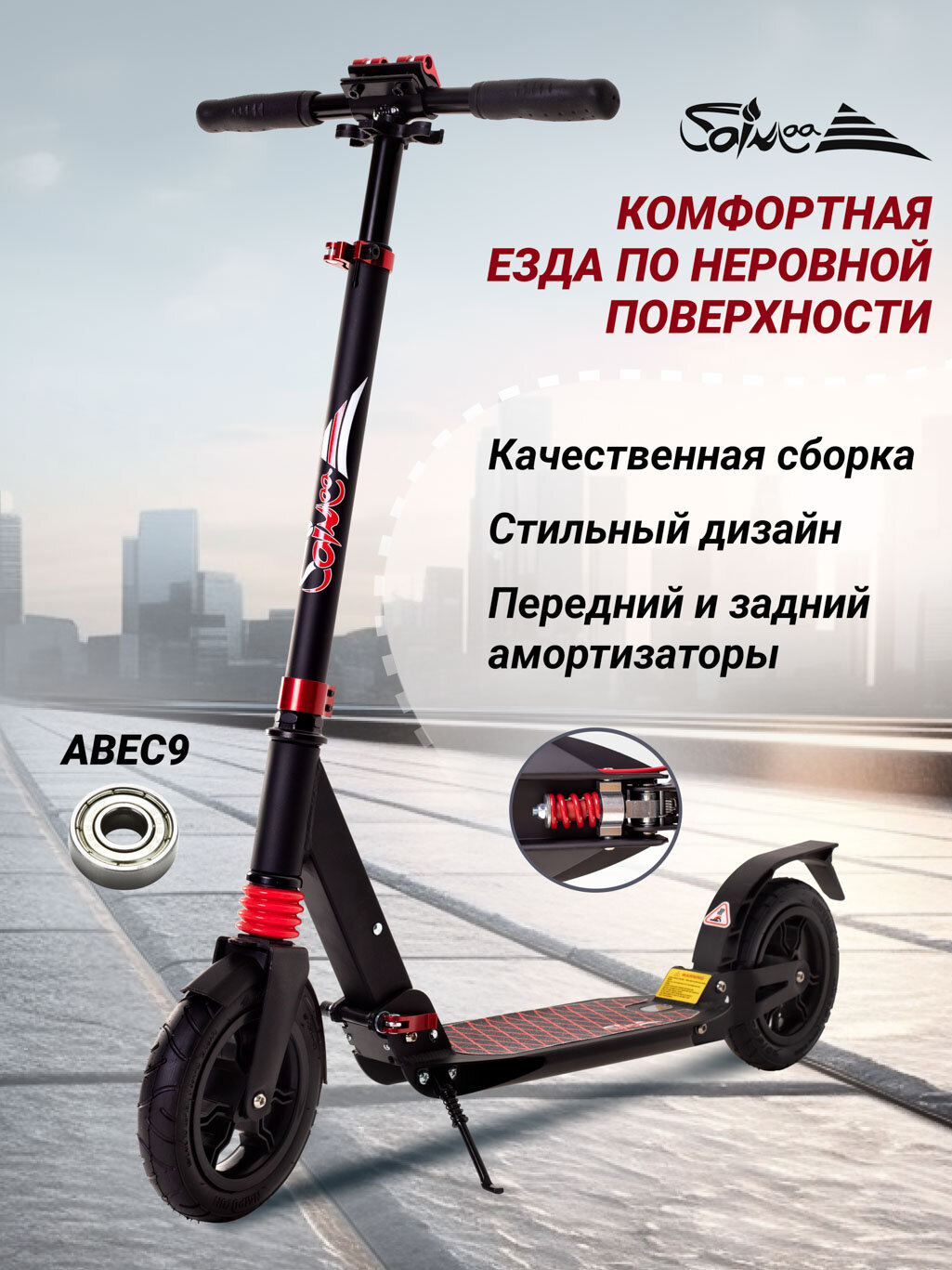 Самокат городской двухколесный Saimaa RIDE черный 200мм информация: