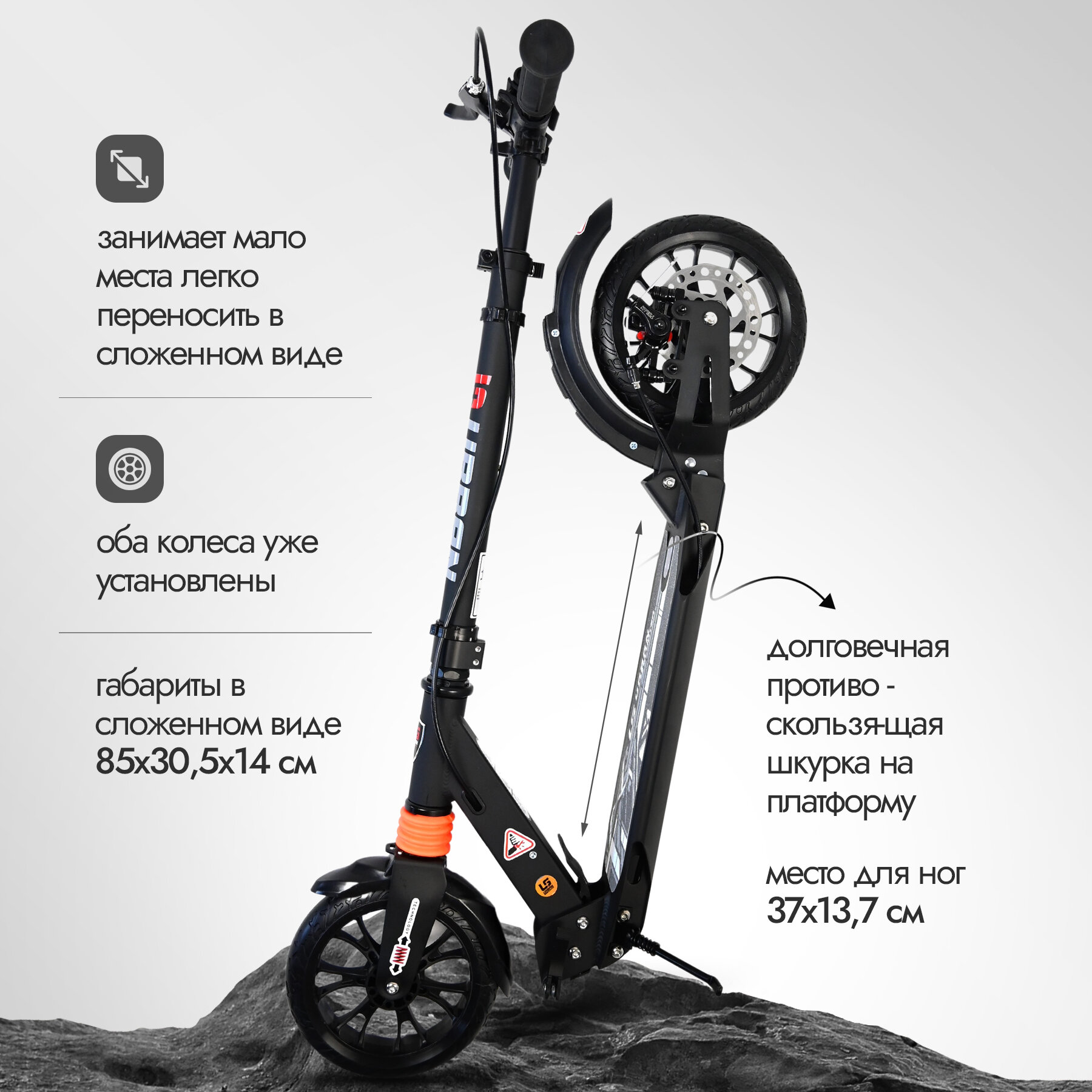 Самокат городской двухколесный черный информация: