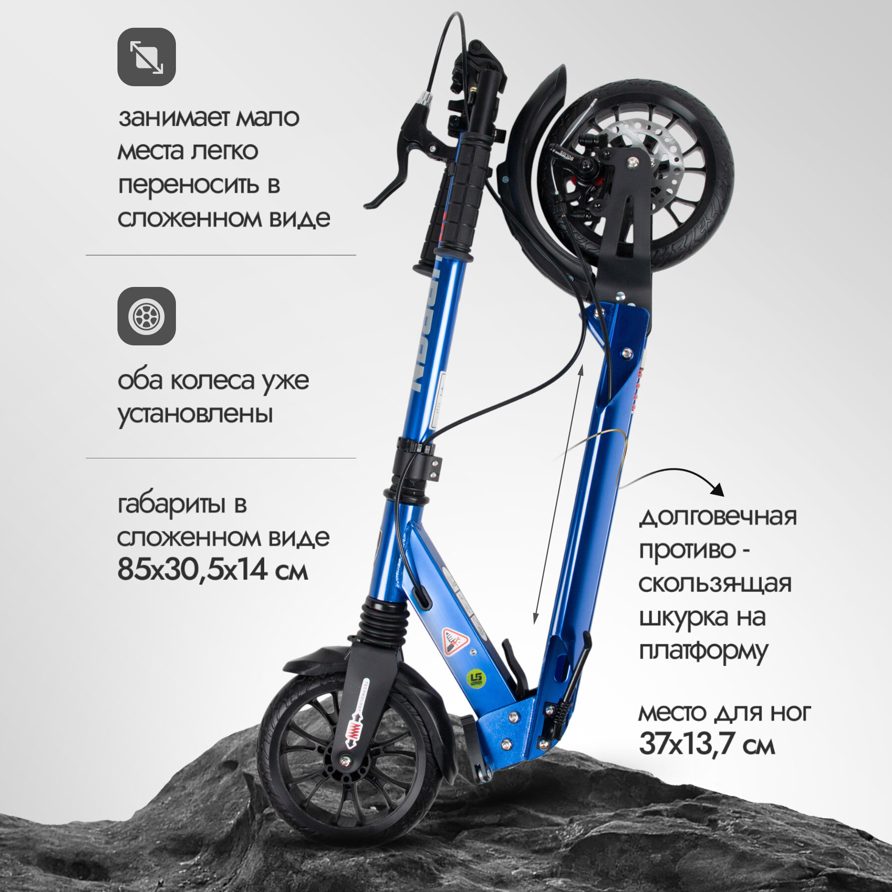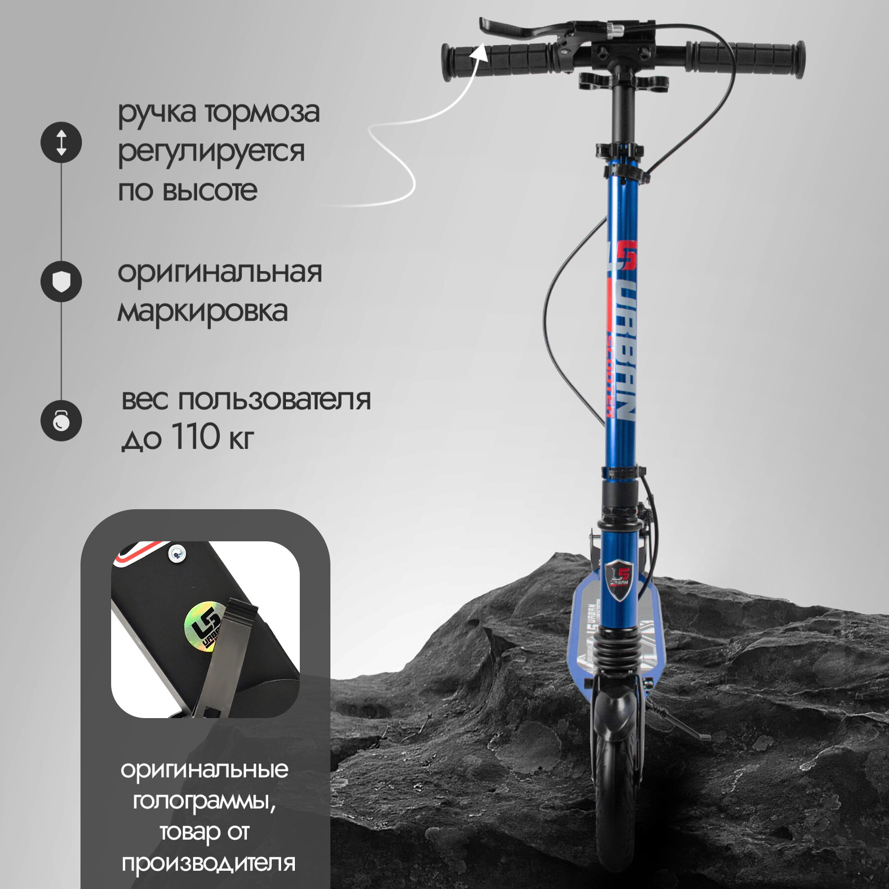 Отзывы на Самокат городской двухколесный Urban scooter с дисковым тормозом синий