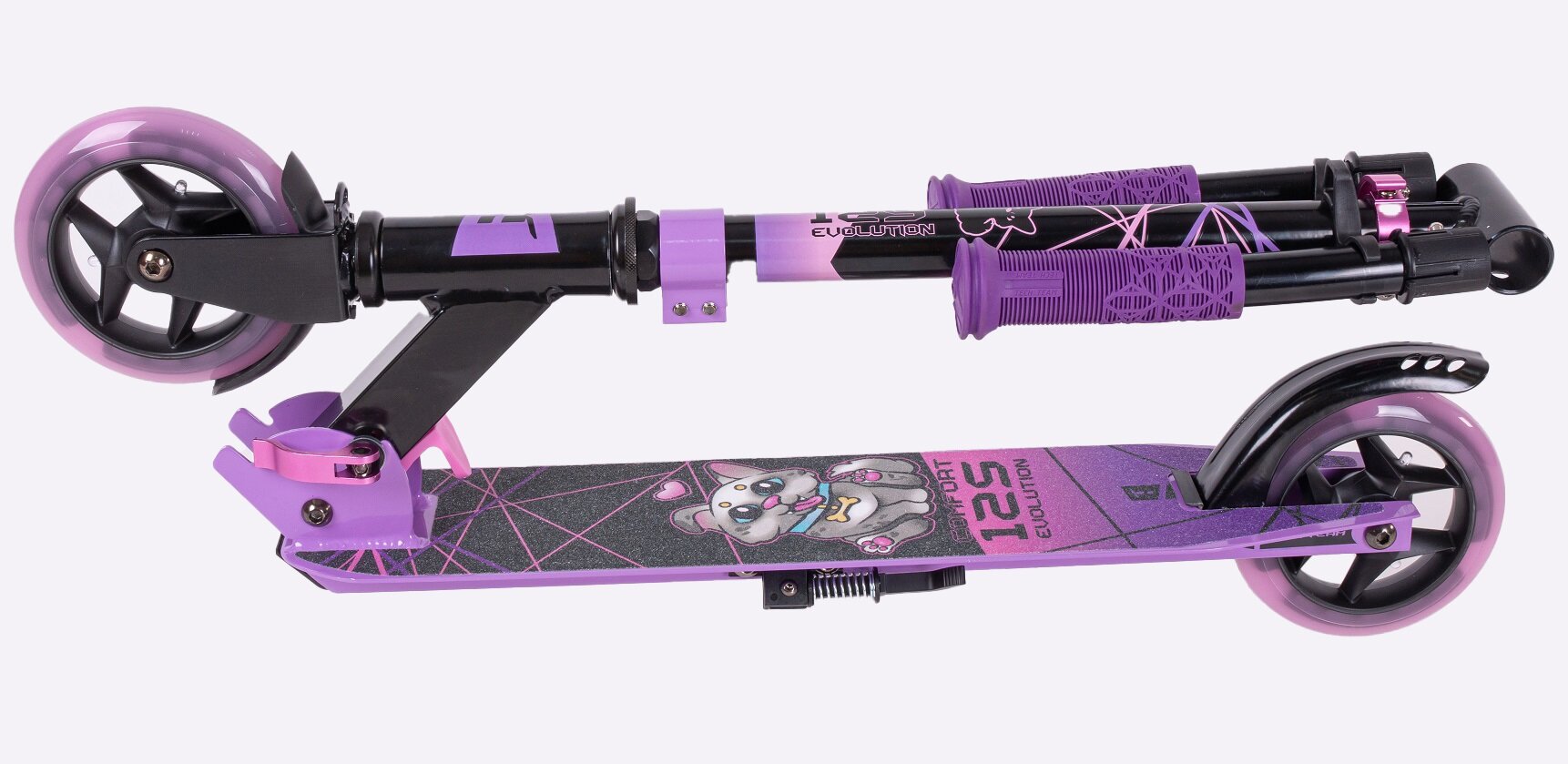 Самокат Comfort Evolution 125 Lux фиолет с яркими светящимися колесами и декой
