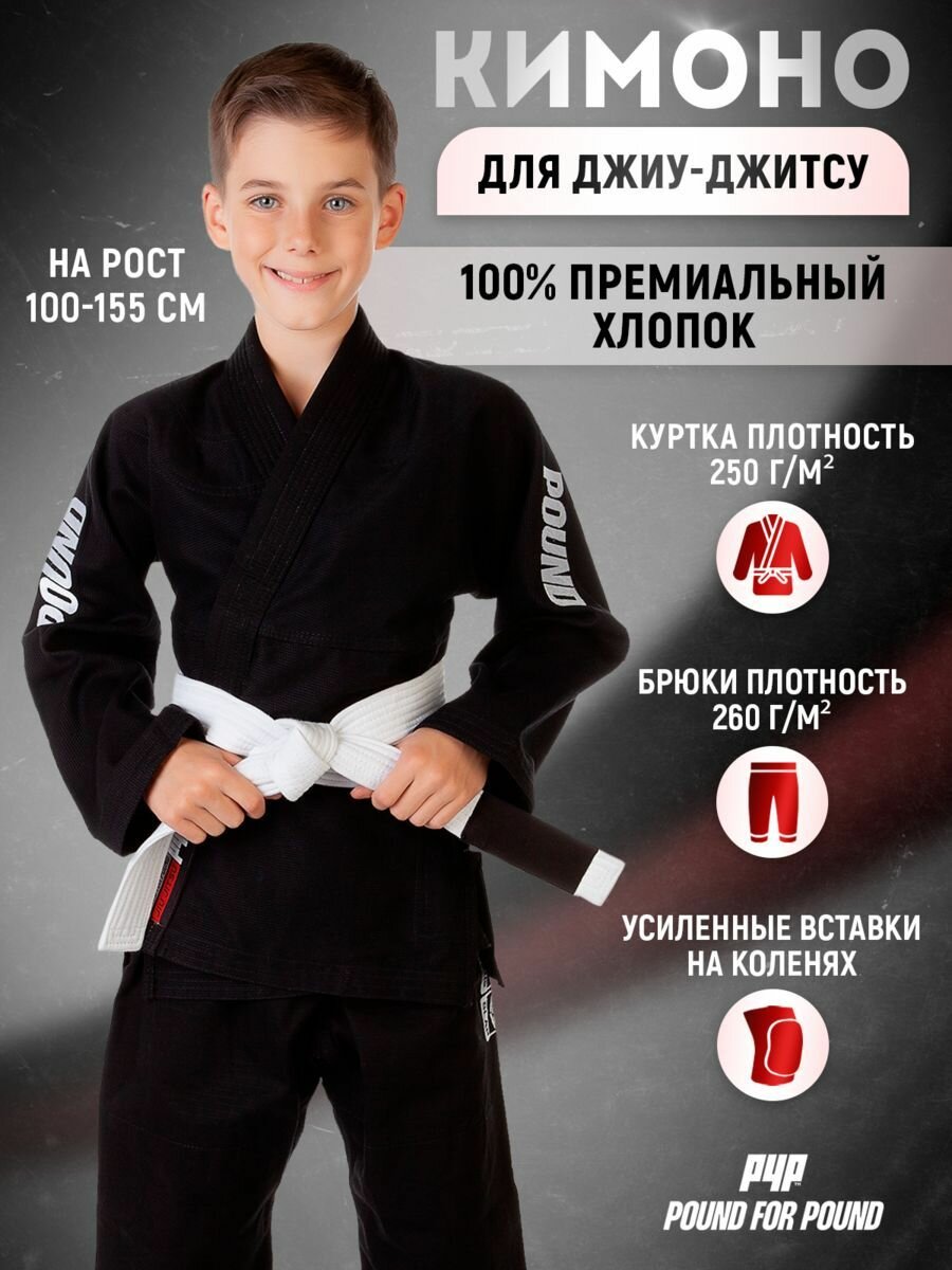 Кимоно Pound For Pound для джиу-джитсу детское, ги для БЖЖ, черное, M3 информация: