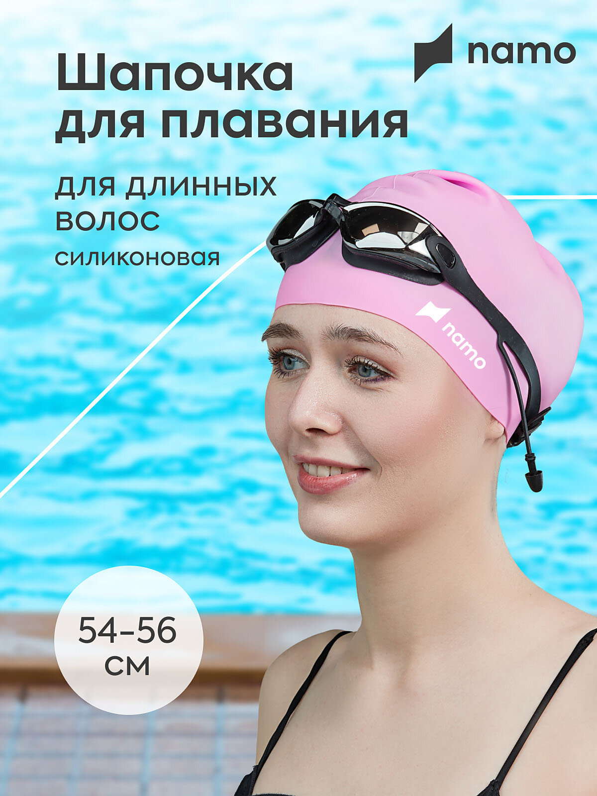 Шапочка для плавания для длинных волос силиконовая NAMO, розовая, 52/60 информация: