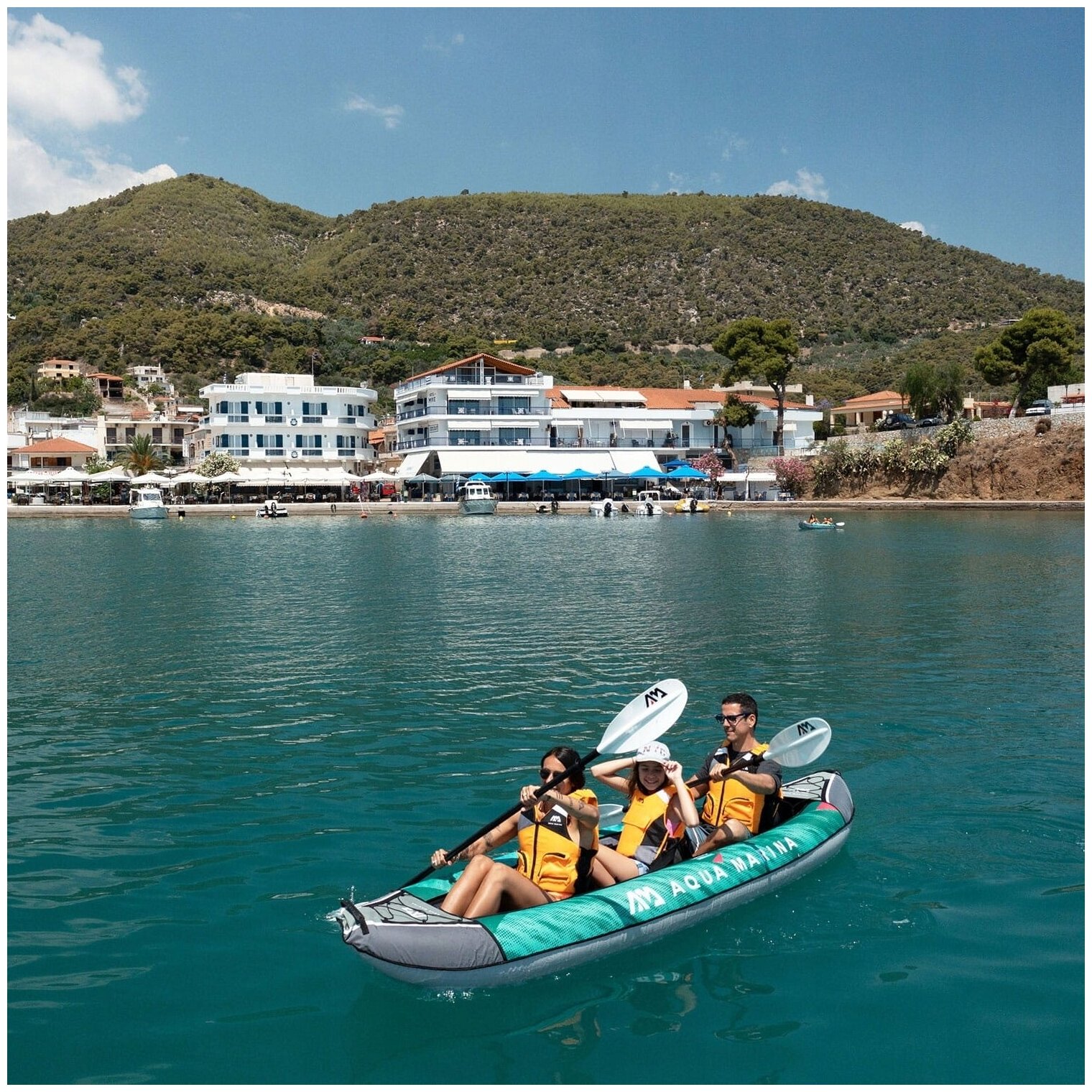 Каяк надувной трехместный с веслами Aqua Marina Laxo-380 размеры 380x95 см, макс 210 кг, в комплекте рюкзак, насос весла сиденье, плавник (LA-380) информация: