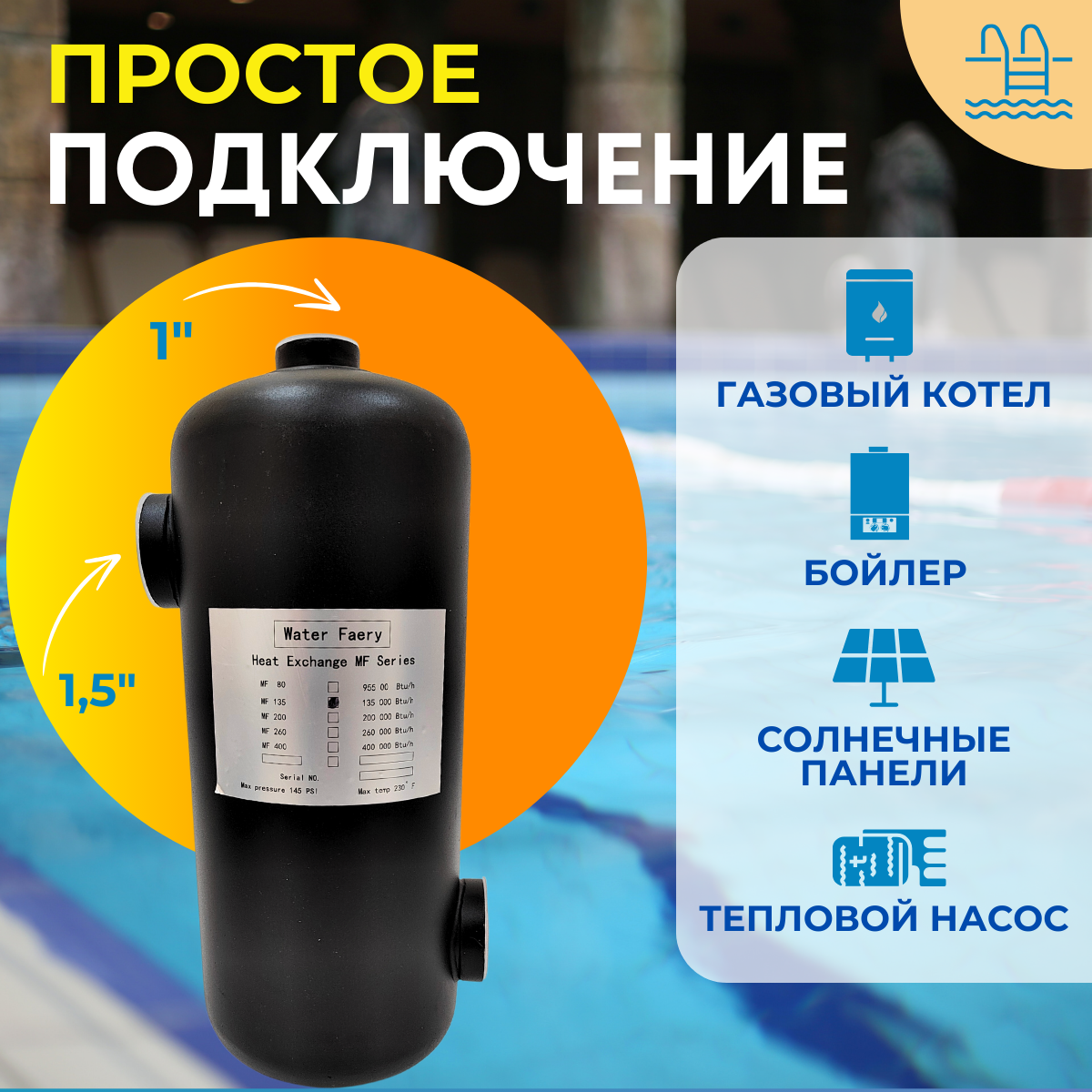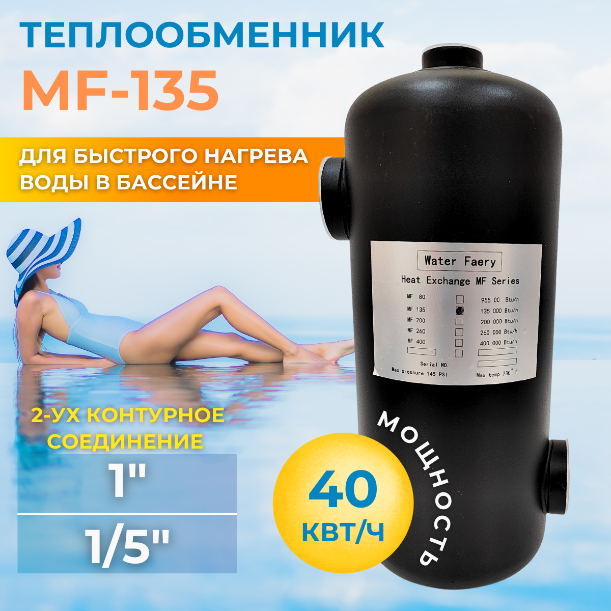 Теплообменник для подогрева воды в бассейне MF-135 40кВт информация: