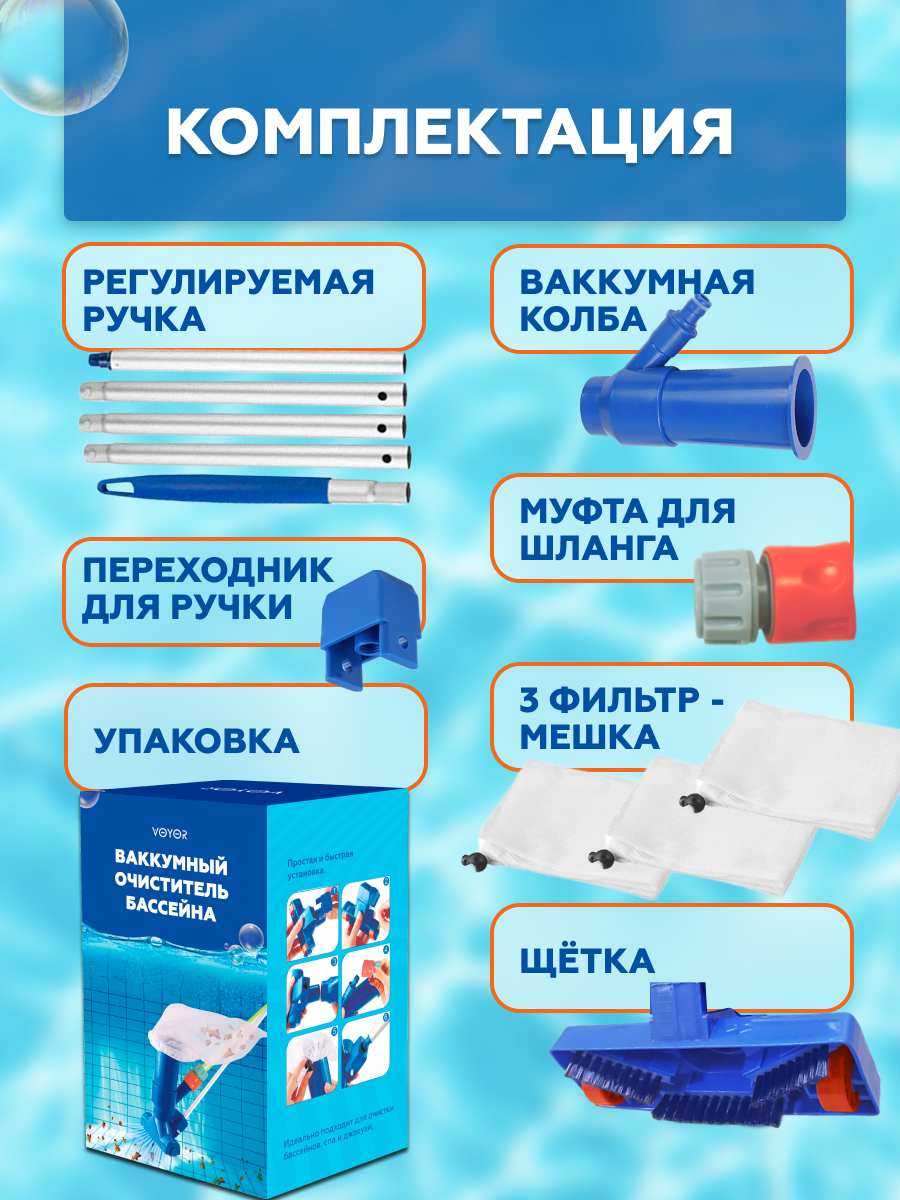 Набор насадок для чистки бассейнов, сачок, щетка, вакуумная насадка-пылесос с мешком 1030 информация: