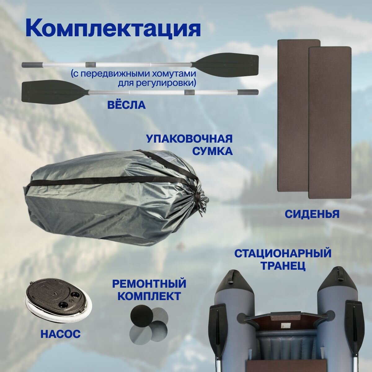 Лодка ПВХ для рыбалки надувная Муссон 2800 НД с надувным дном, двухместная, стационарный транец под мотор, серо-черная информация: