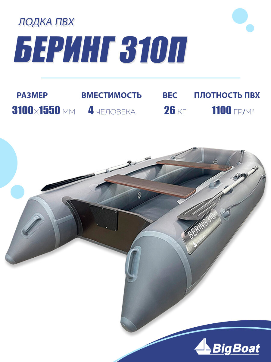 Надувная, под мотор, килевая лодка из ПВХ для рыбалки Bering (Беринг) 310П информация: