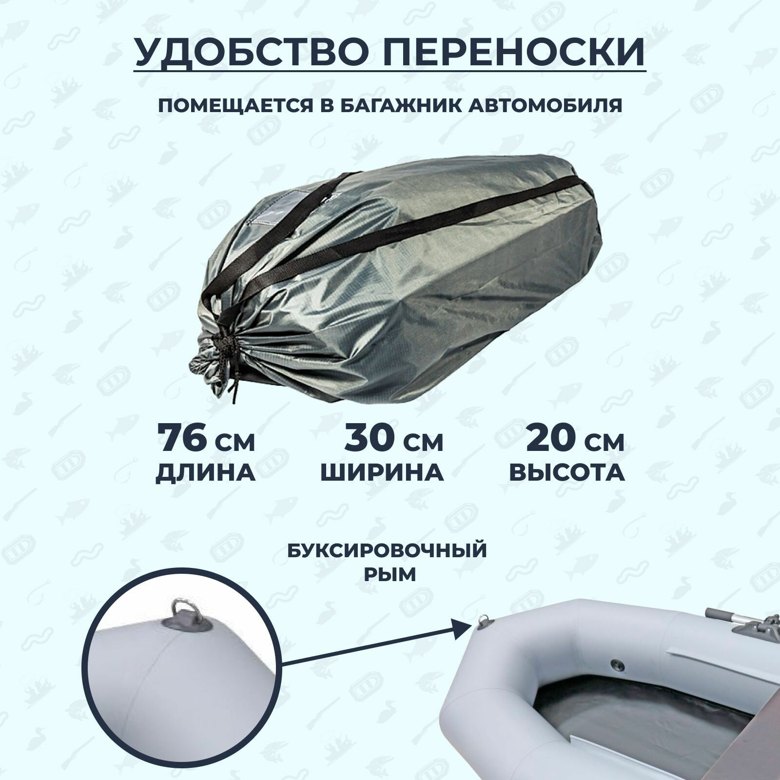 Лодка надувная для рыбалки ПВХ Лодки Поволжья R-210 + сплошной ПОЛ слань в комплекте одноместная гребная, серая информация: