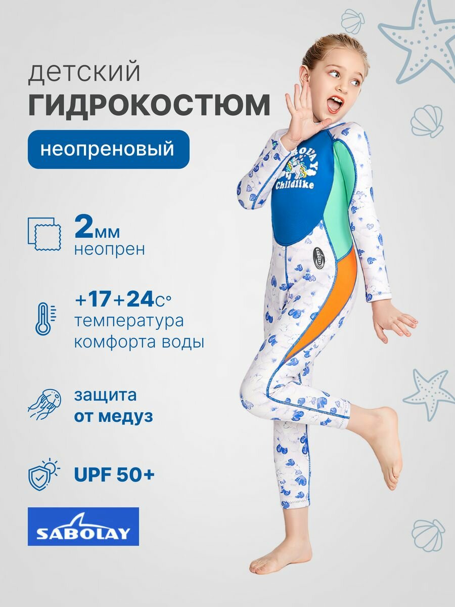 Гидрокостюм белый и голубой длинный неопрен 2 мм, размер M 110-116 3 400 ₽