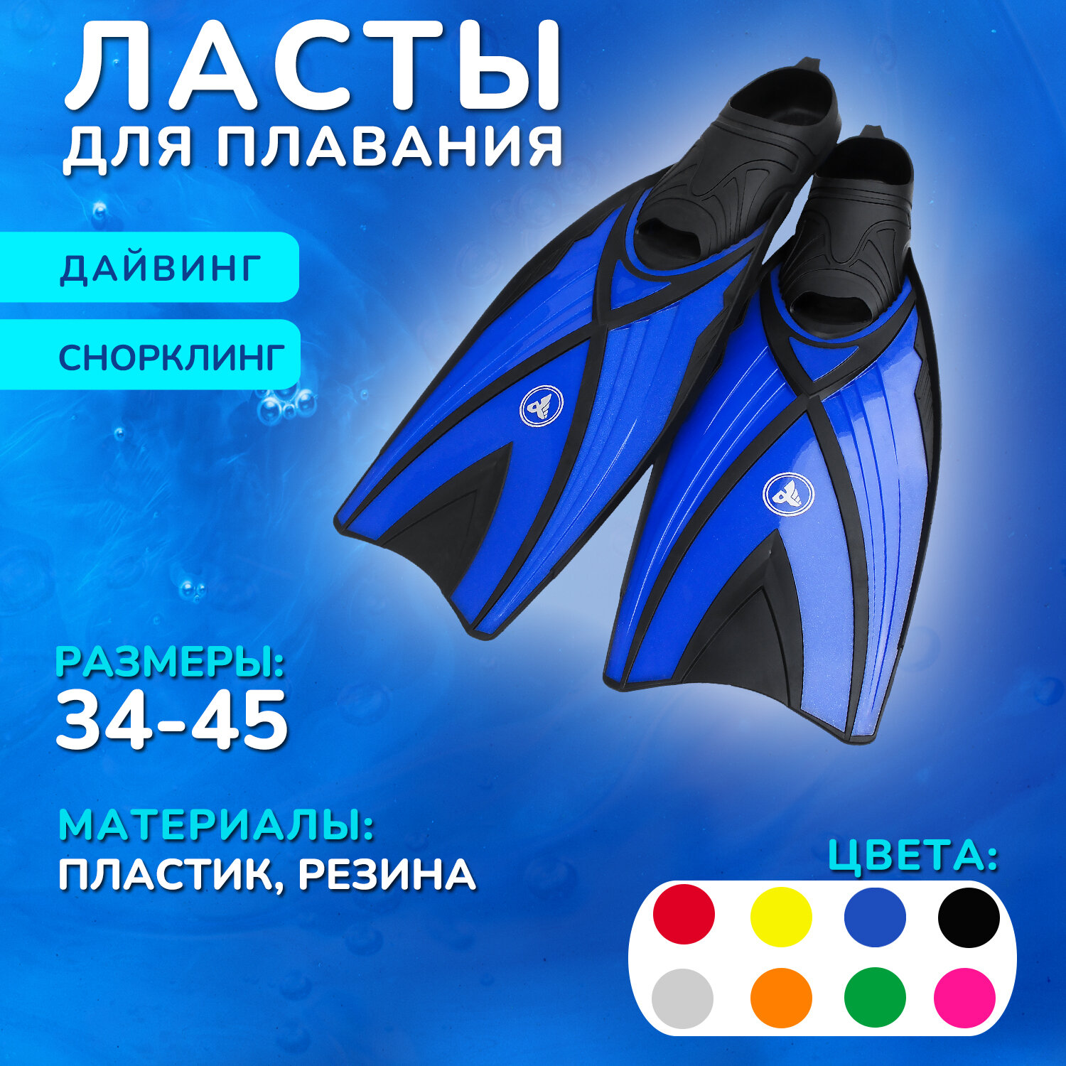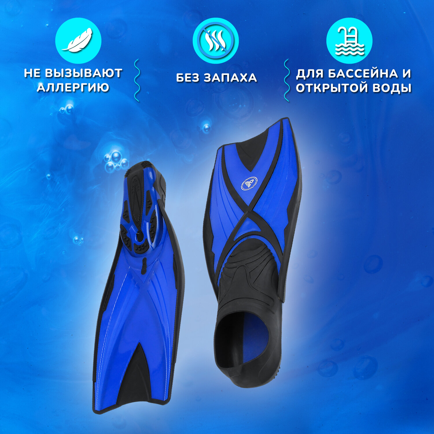 Ласты укороченные, силиконовые, размер S (33-35), синий цвет