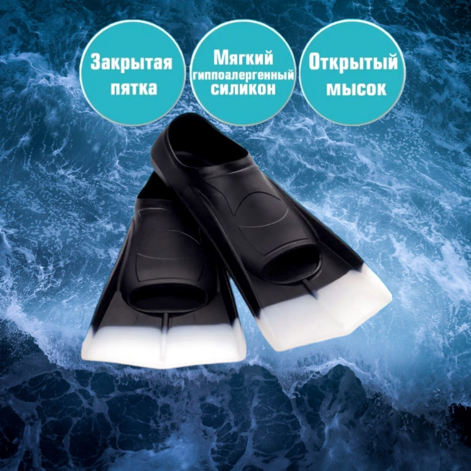 Ласты для плавания в бассейне силиконовые короткие черные S 1 850 ₽