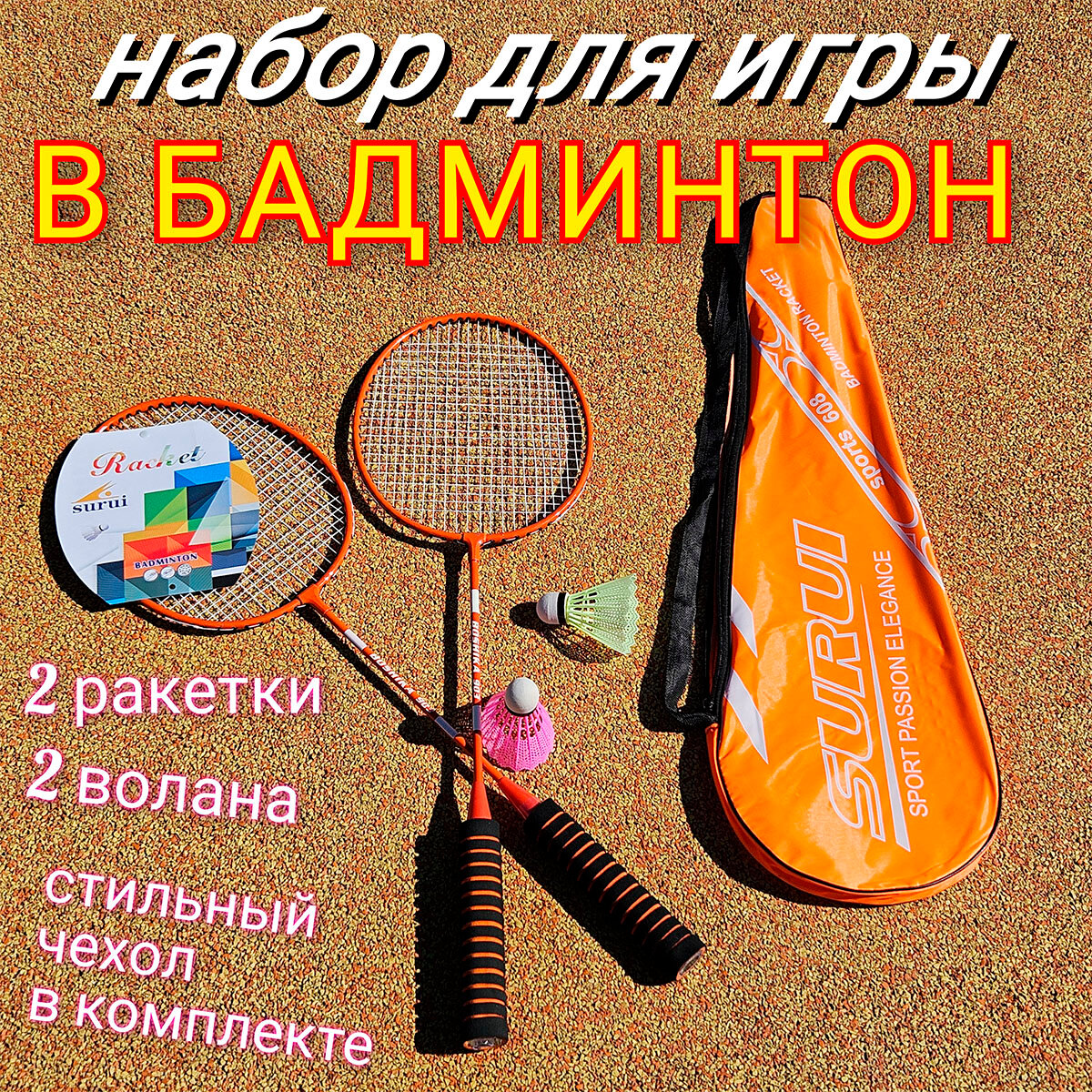 Набор ракеток для бадминтона AZ Pro Sport с 2мя воланами и стильным чехлом информация: