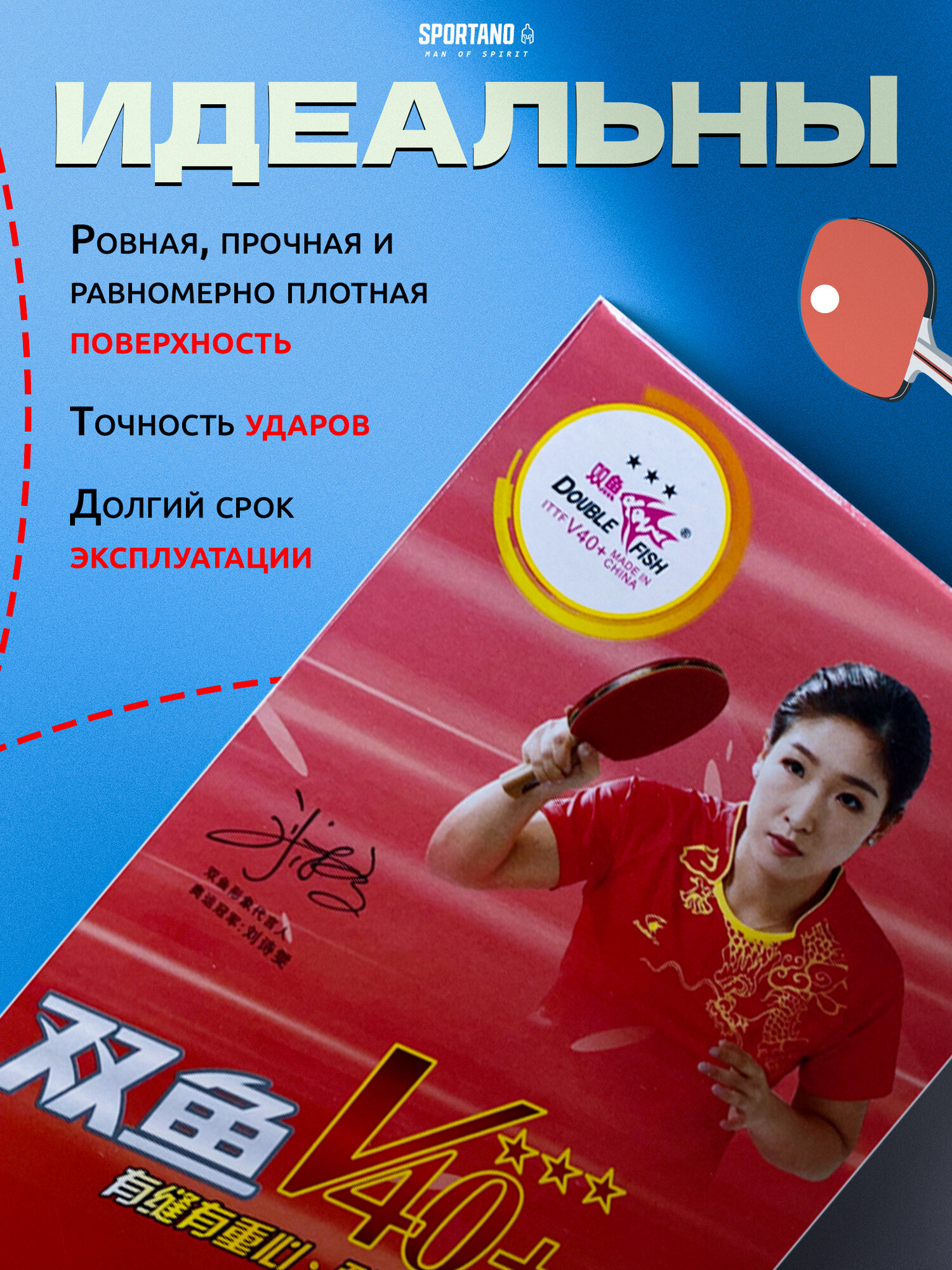Мяч для настольного тенниса Double Fish V40, 10 шт.