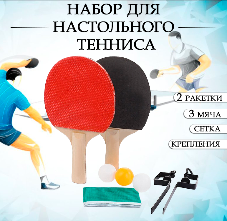 10 цен на Набор для настольного тенниса: ракетки 2 шт., мячики 3 шт., сетка, крепления / Набор для игры в пинг-понг 109-17