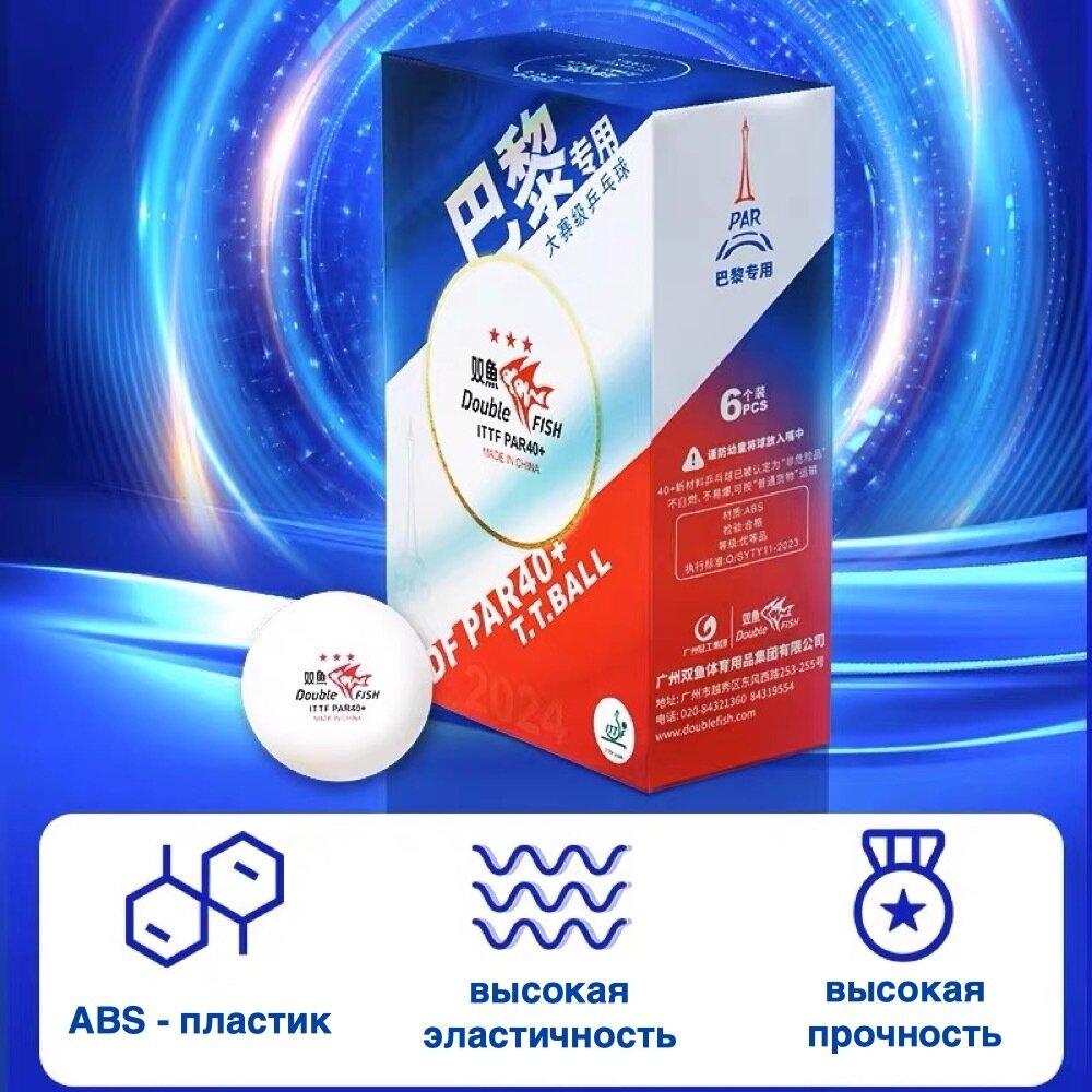 Мячи для настольного тенниса Double Fish Olympic 2024 3* PAR40+ (6шт.)