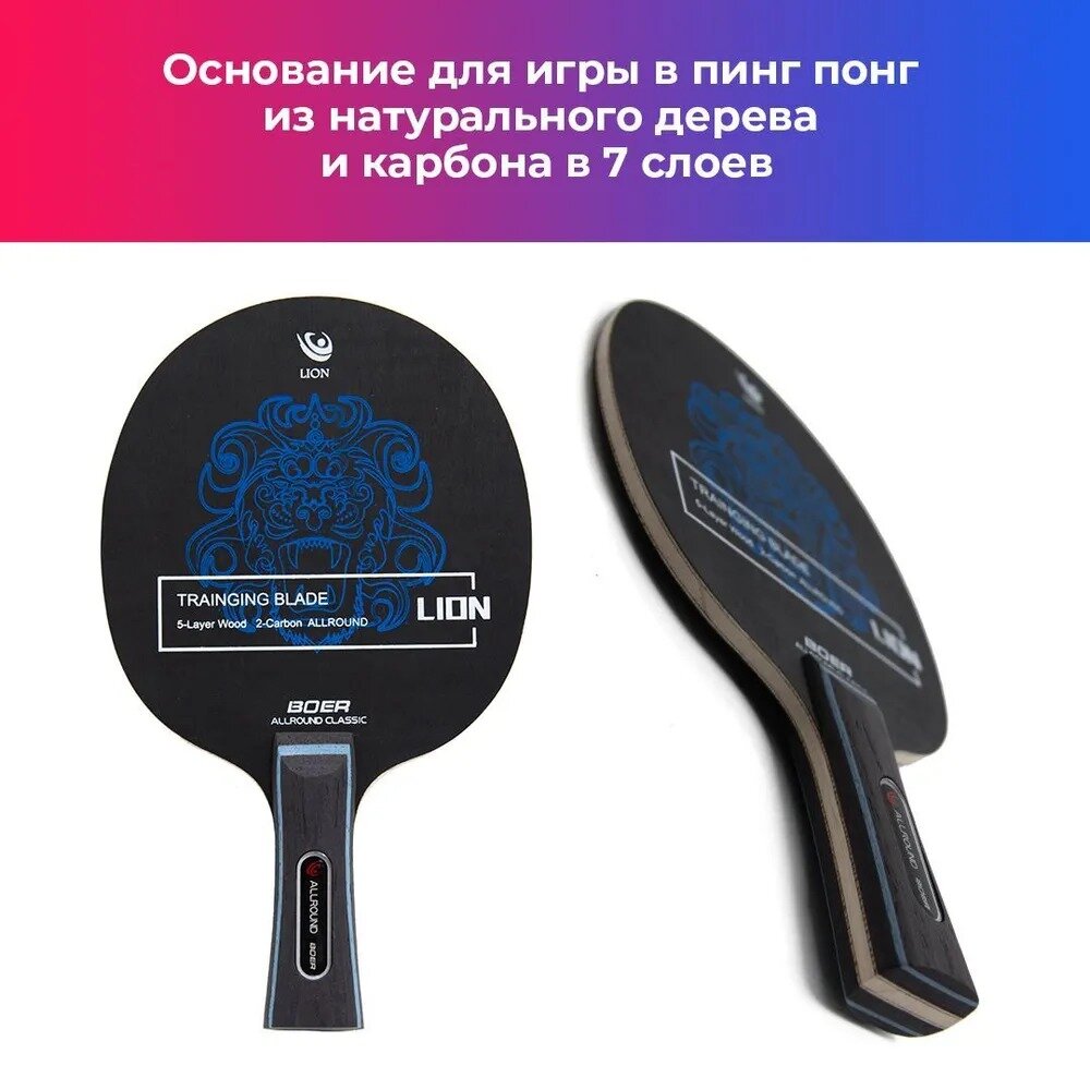 Основание ракетки для настольного тенниса из 7 слоев натуральной древесины и карбона с короткой ручкой "Китайское перо"