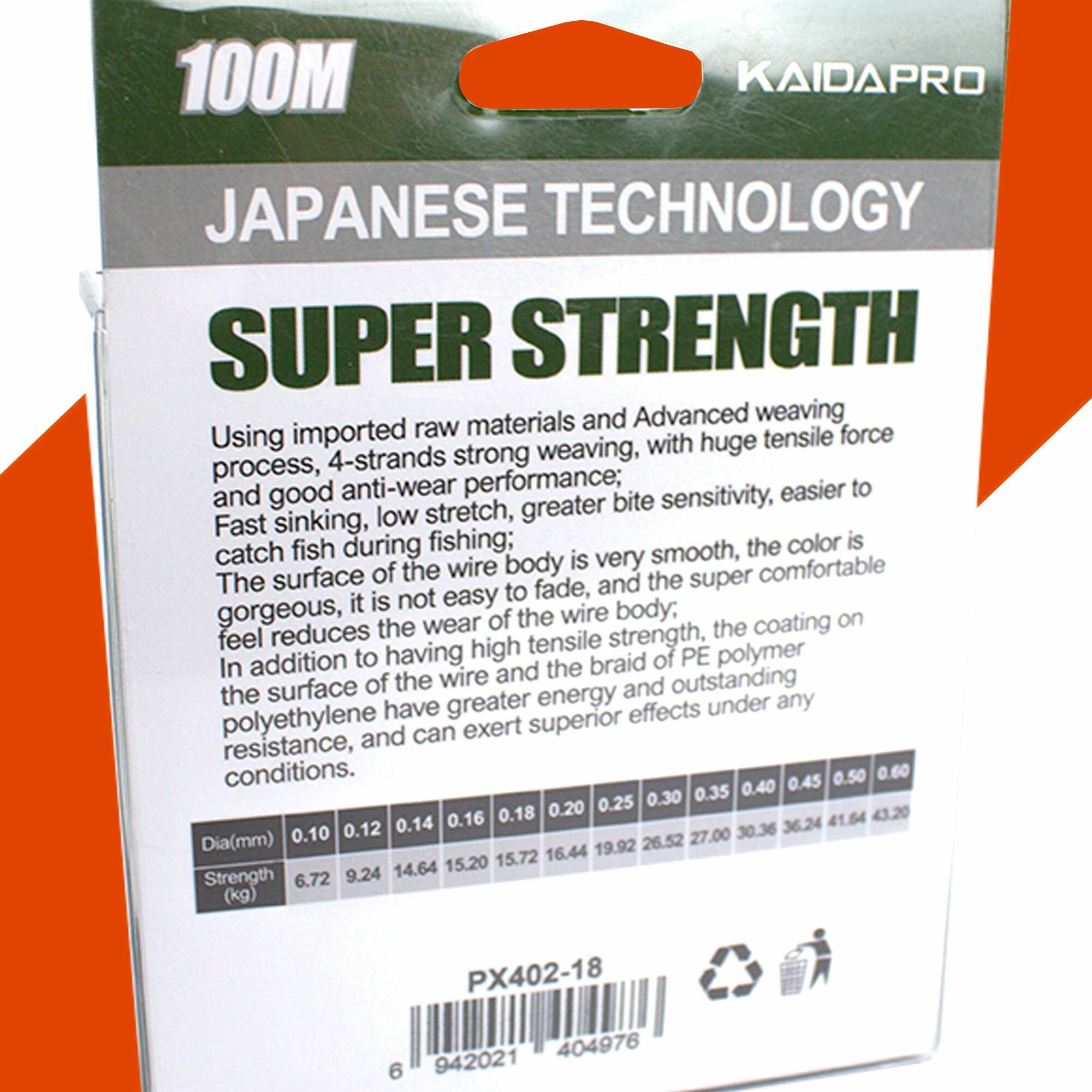 Леска рыболовная плетеный шнур леска плетенка KAIDA FIGHTERS PX-402 100м толщина - 0,18мм тест - 10,8 кг