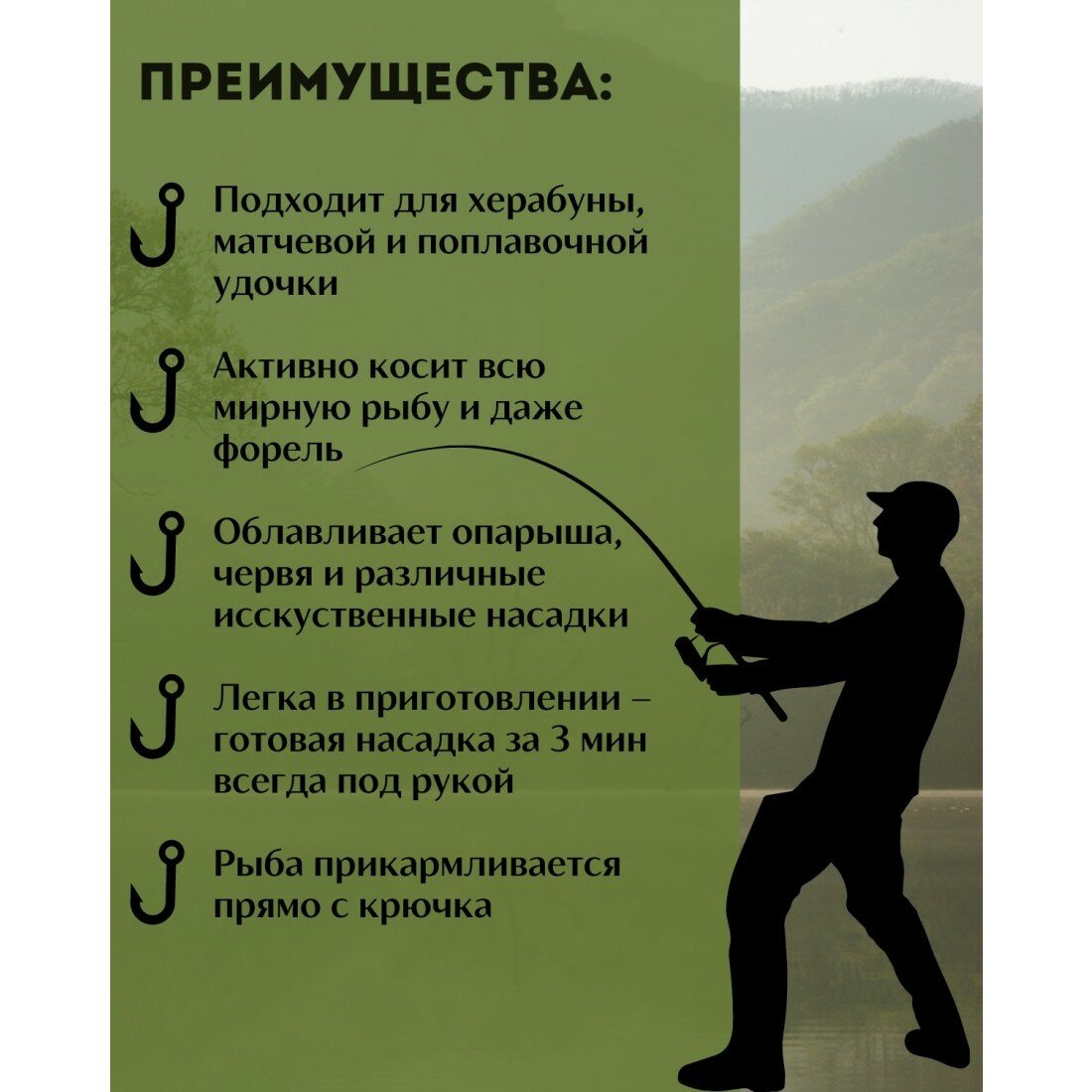 | Особенности | для любого сезона, насадочные, натуральная, прикормочные, пылящие, тонущие |