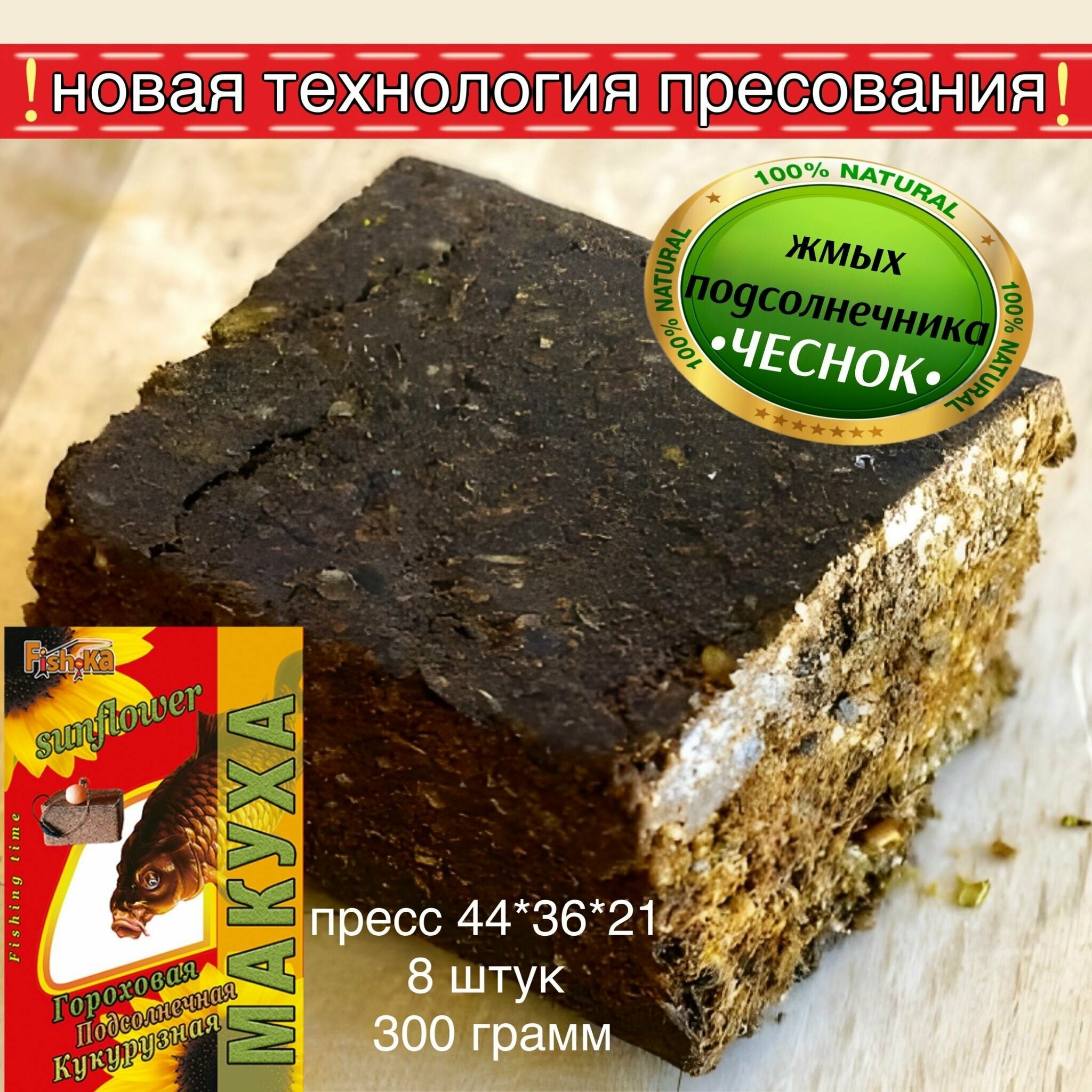 Прикормка для рыбалки Макуха / Жмых подсолнечника + с ароматом чеснока пресс брусок 8 шт. / прикормка приманка для карпа сазана информация: