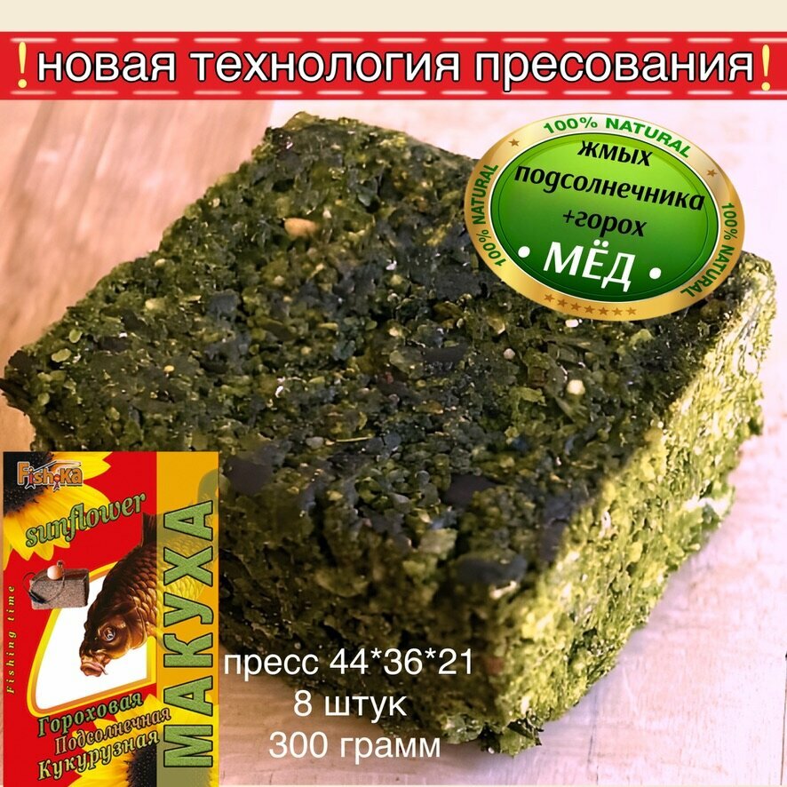 Макуха для рыбалки / Жмых подсолнечника + горох с ароматом меда пресс брусок 8 шт. / прикормка приманка для карпа сазана информация: