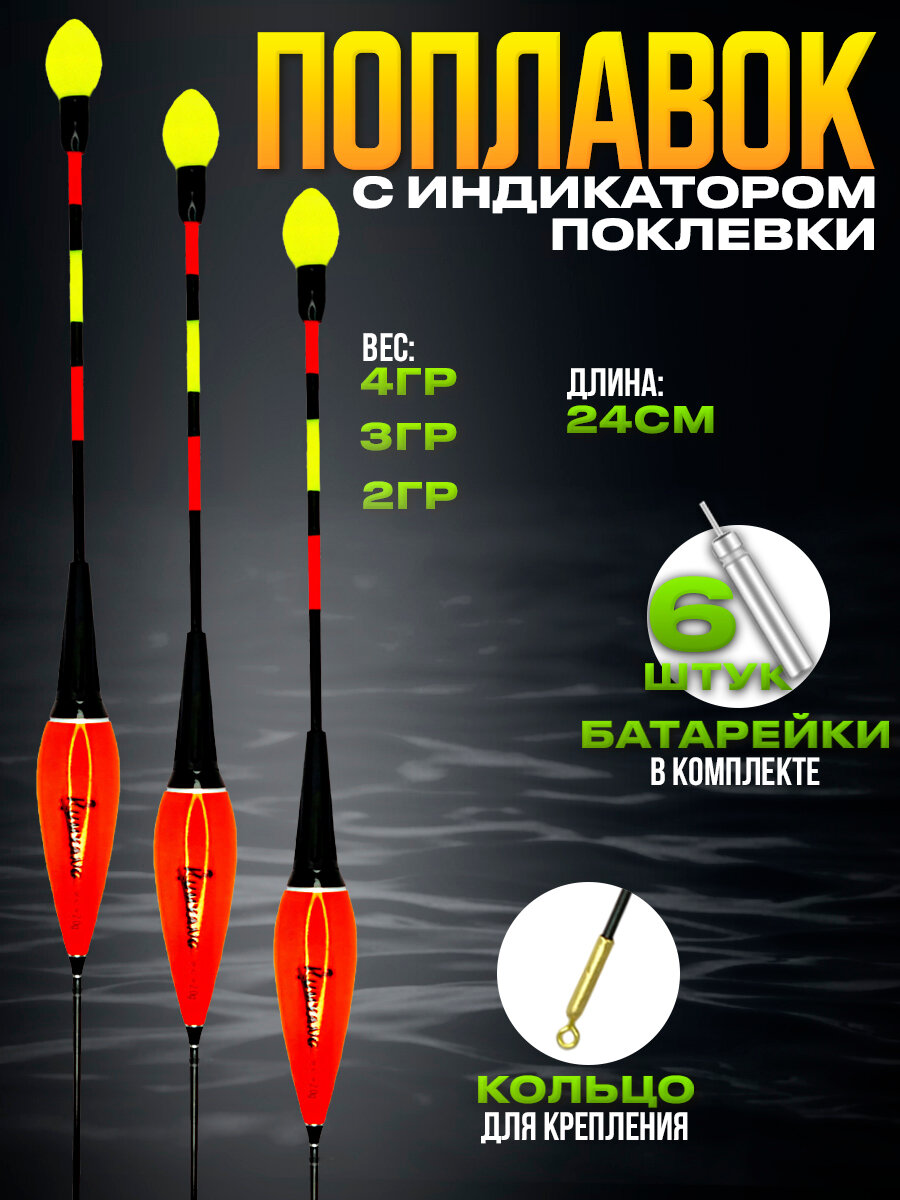 Умный поплавок для рыбалки светящийся с индикатором поклевки 2, 3, 4гр 3шт #1 1 189 ₽