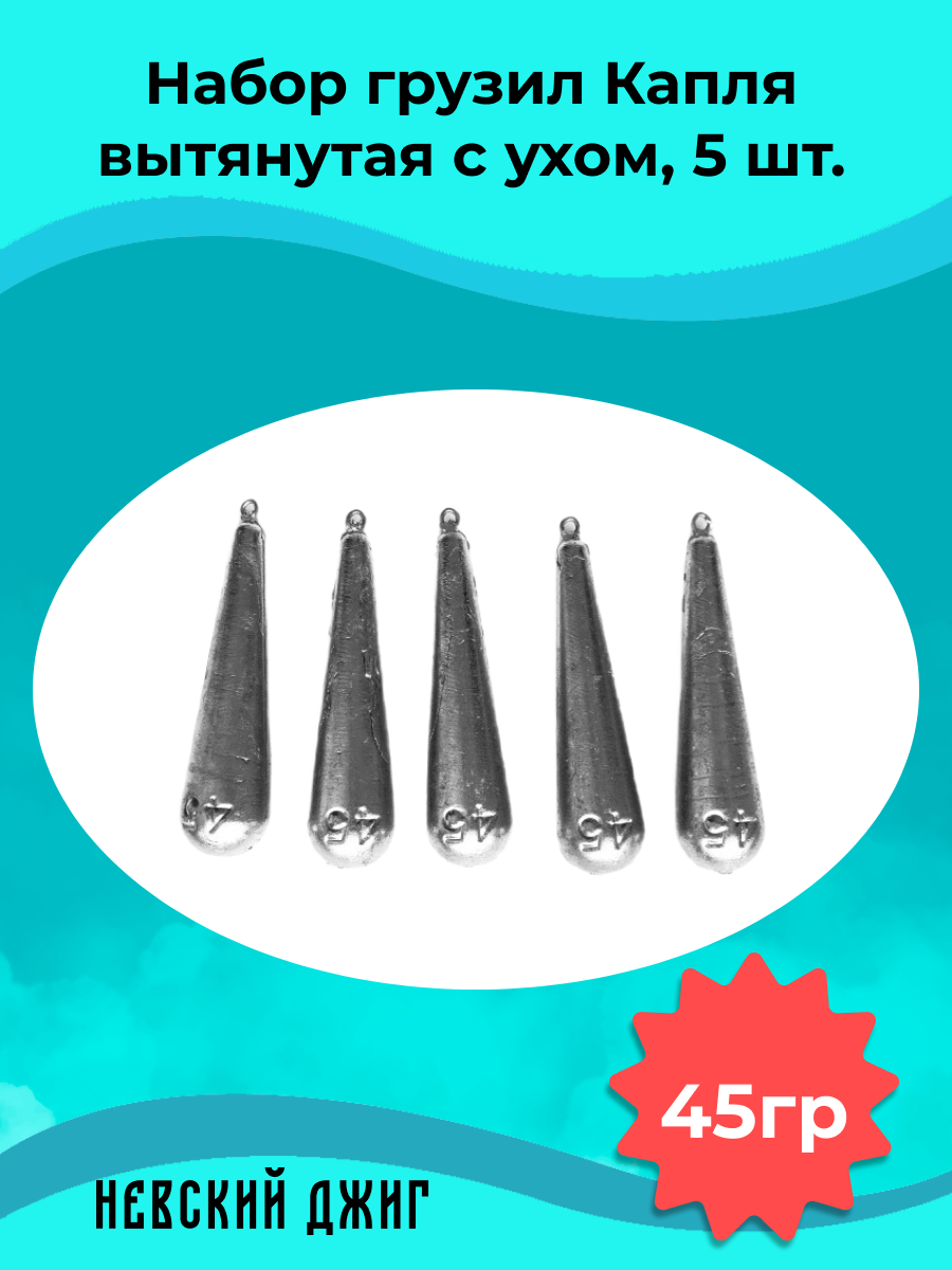 10 цен на Набор грузил для рыбалки Капля вытянутая с ухом 45 гр (5шт) на отводной поводок Дроп шот