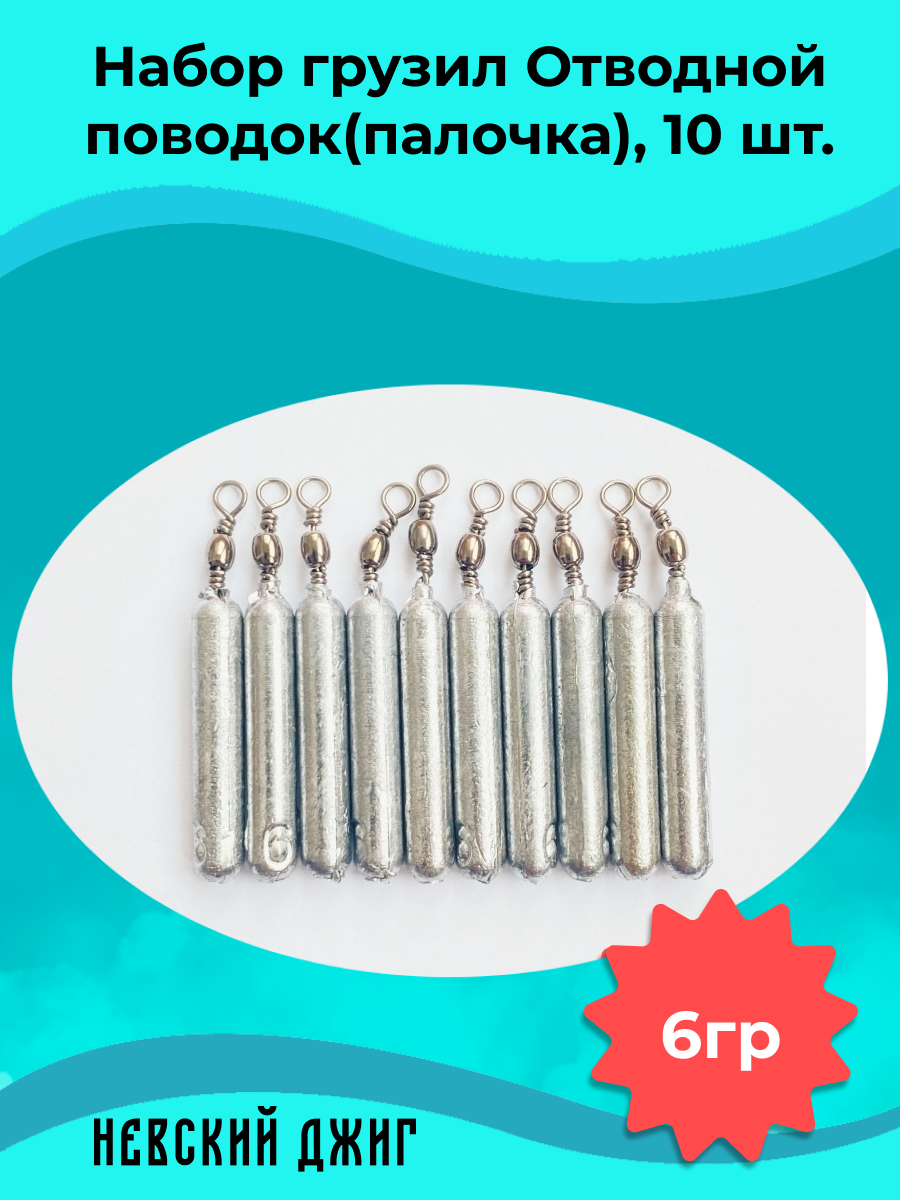 10 цен на Набор грузил для рыбалки Палочка 6 гр (упаковка 10 штук) на отводной поводок Дроп шот