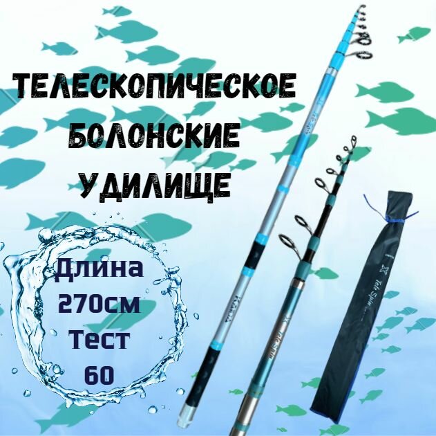 Удилище телескопическое Kaida Х TELE SPIN укороченное 2.7м тест до 60 болонское / Удочка для рыбалки информация: