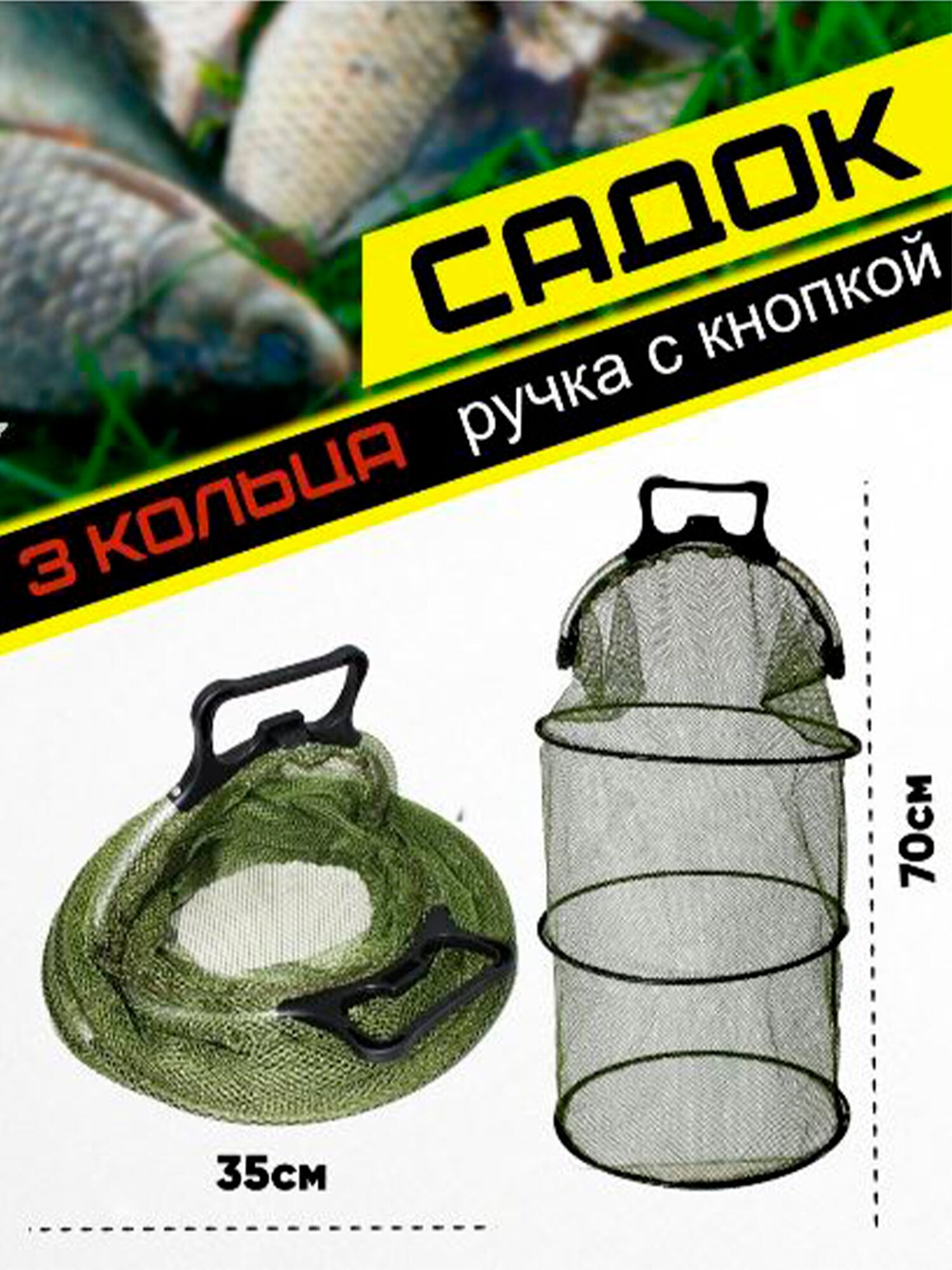Садок для рыбалки 3 кольца ручка с кнопкой информация: