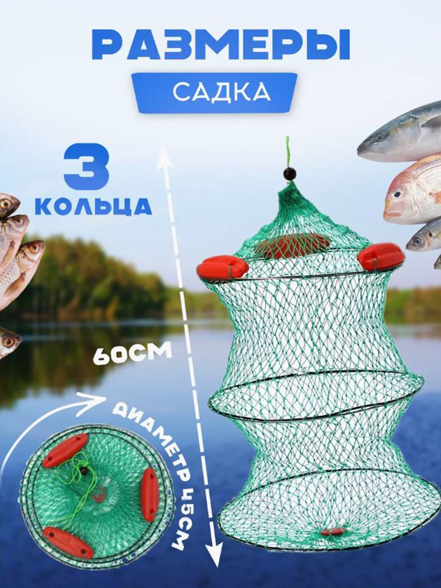 Садок рыболовный с поплавками 3 кольца 45см информация: