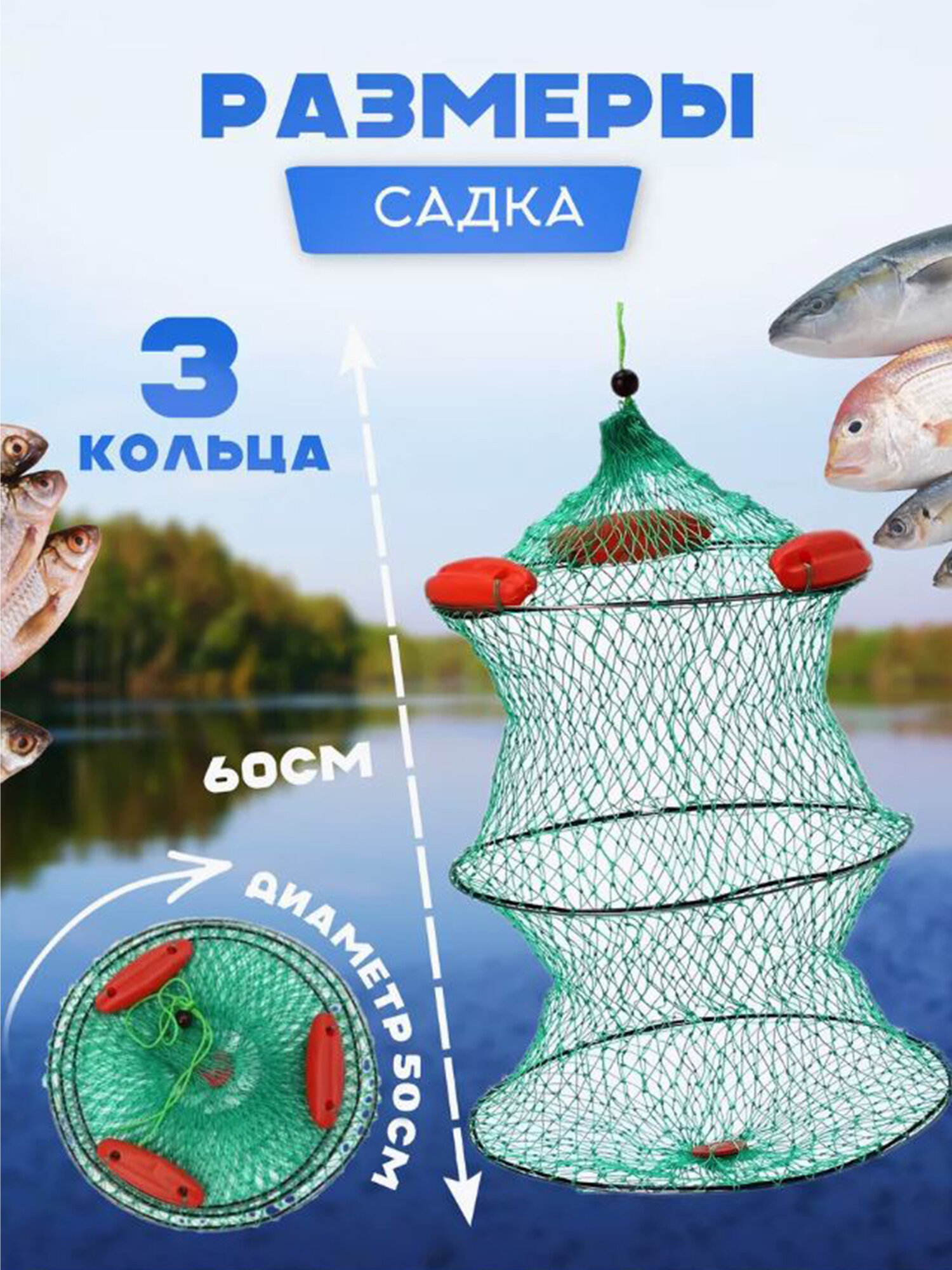 Садок рыболовный с поплавками 3 кольца 50см информация: