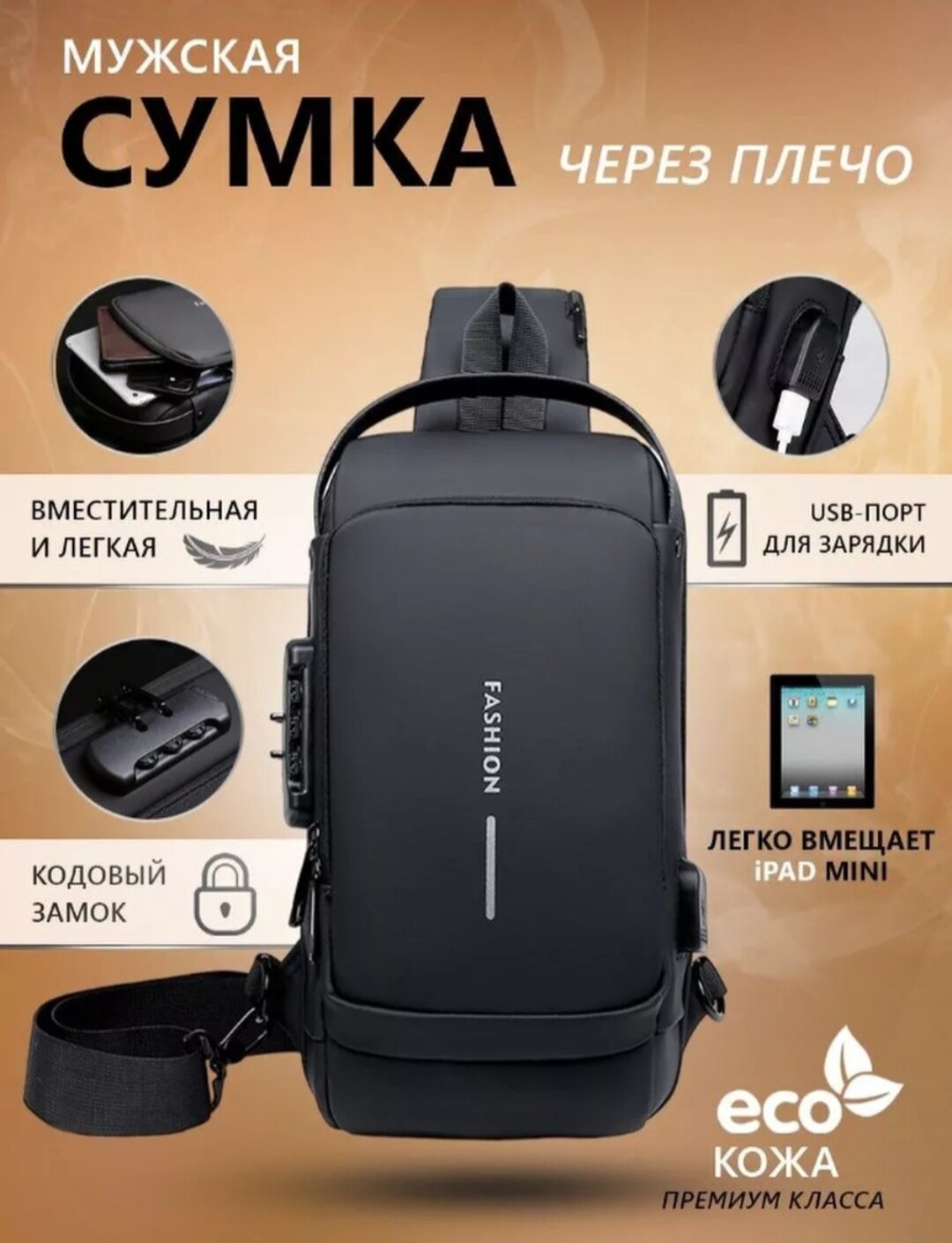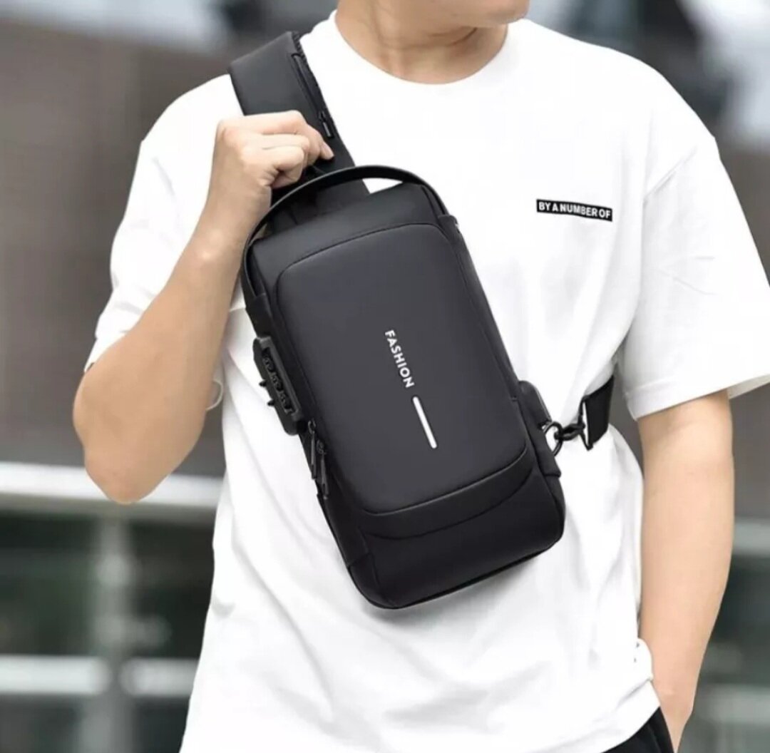 Дорожная сумка рюкзак противоугонный через плечо туристический барсетка с кодовым замком универсальный повседневный с usb цвет черный информация: