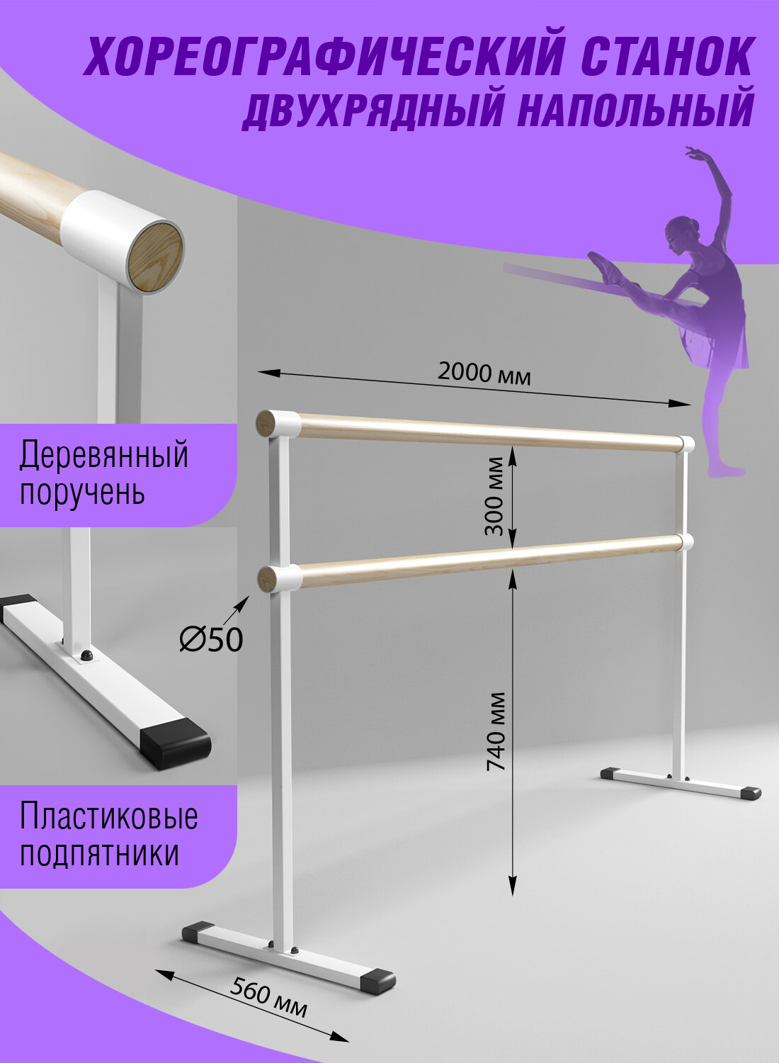 Станок хореографический 2м, цв.белый информация: