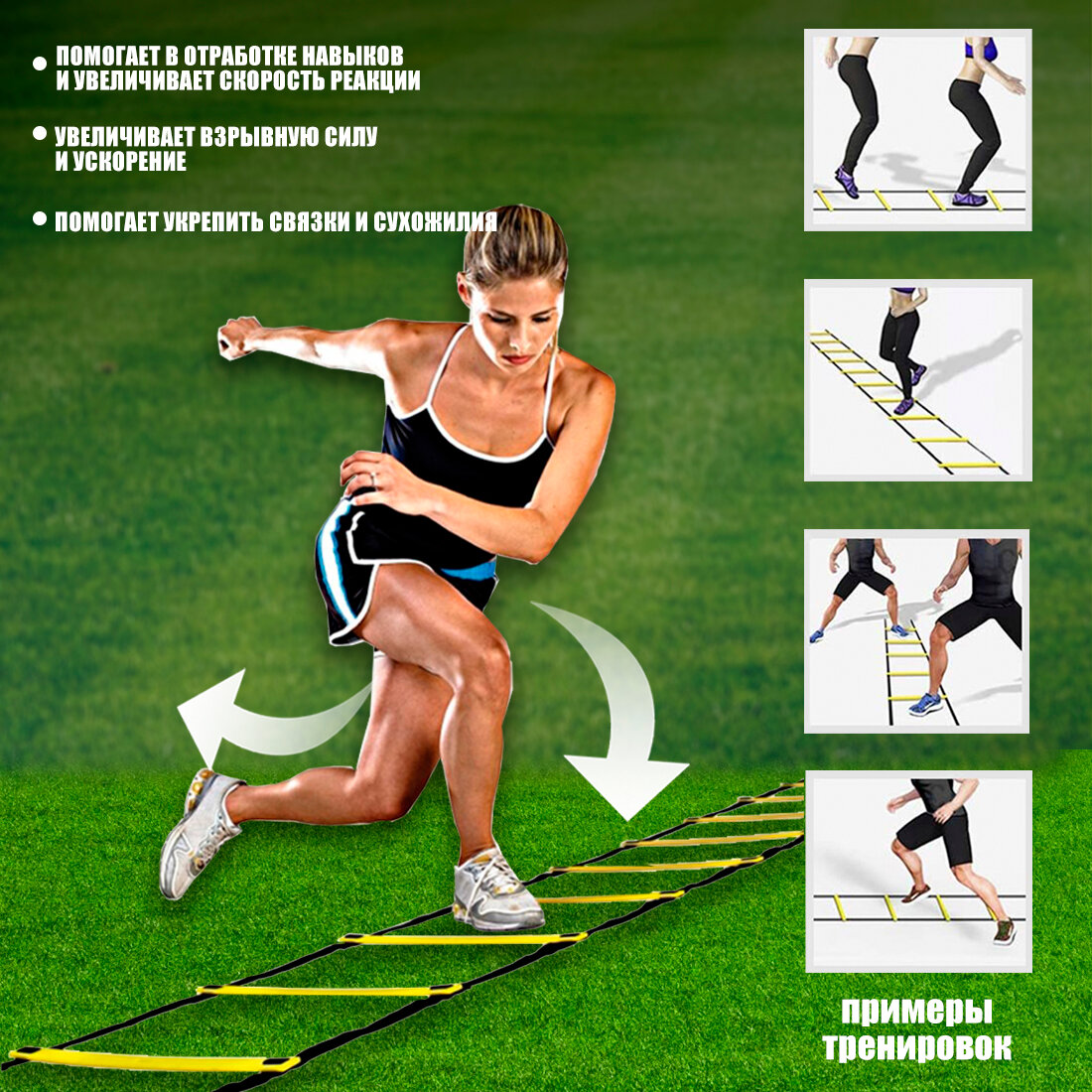 10 цен на Лестница координационная 6 метров + 10 цветных конусов для спорта