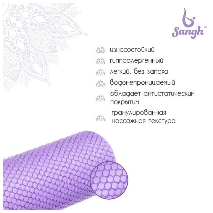 Роллер Sangh, для йоги, размеры 30 х 9 см, массажный, цвет фиолетовый