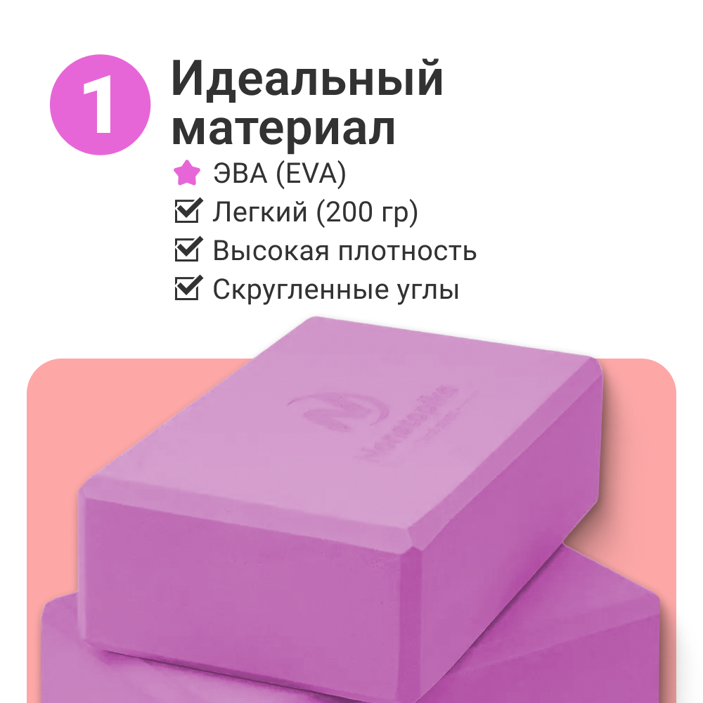 Блок для йоги Nonstopika, кирпич спортивный для фитнеса, 23х15х7.5см, фиолетовый, 2 штуки