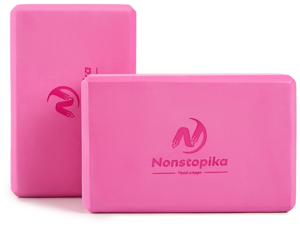 10 цен на Блок для йоги/Кирпич спортивный/Блок для фитнеса/Опорный блок /Кубик для йоги и пилатеса Nonstopika 23х15х7.5см розовый, опорный кирпич, 2 штуки