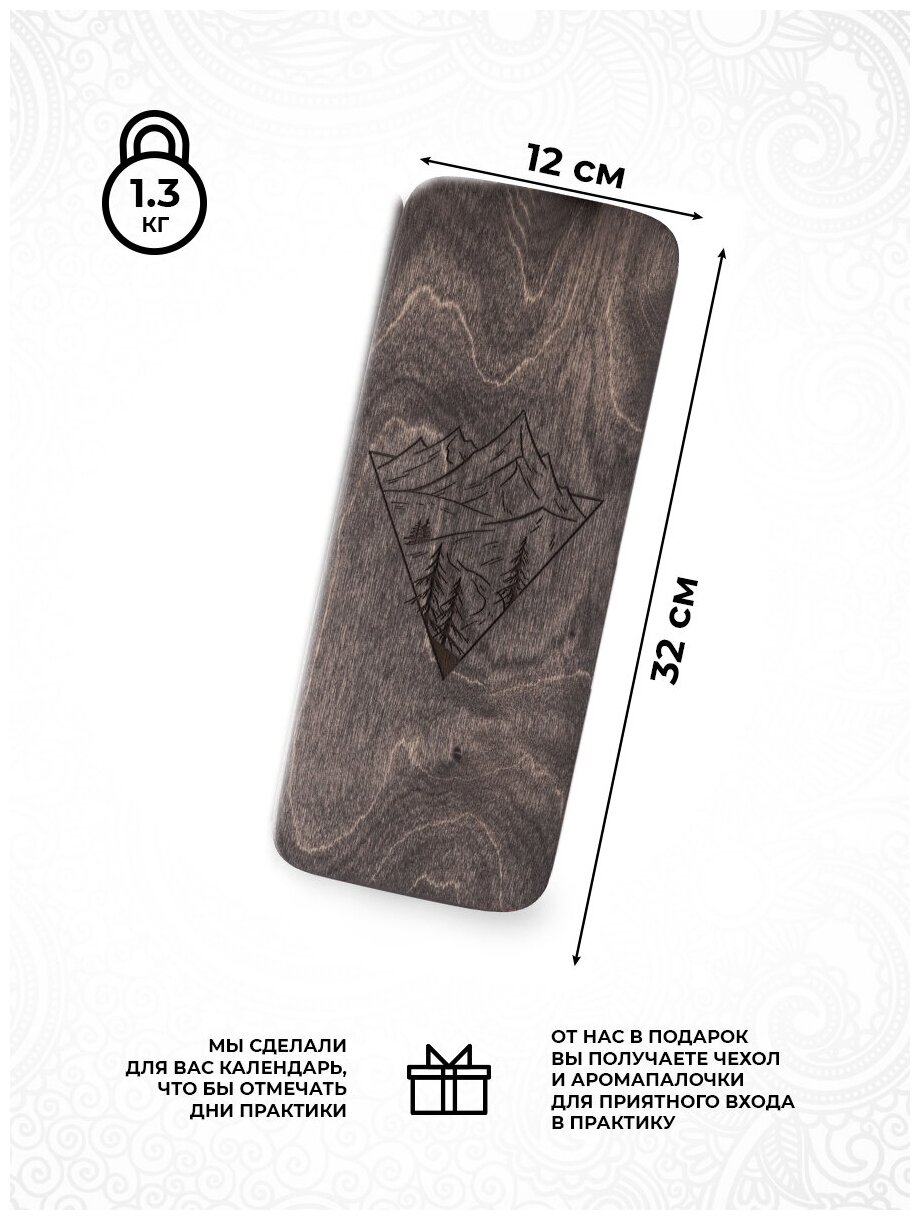Доска Садху / Доска с гвоздями / Доска для йоги / Горы / коричневый / шаг 8 мм