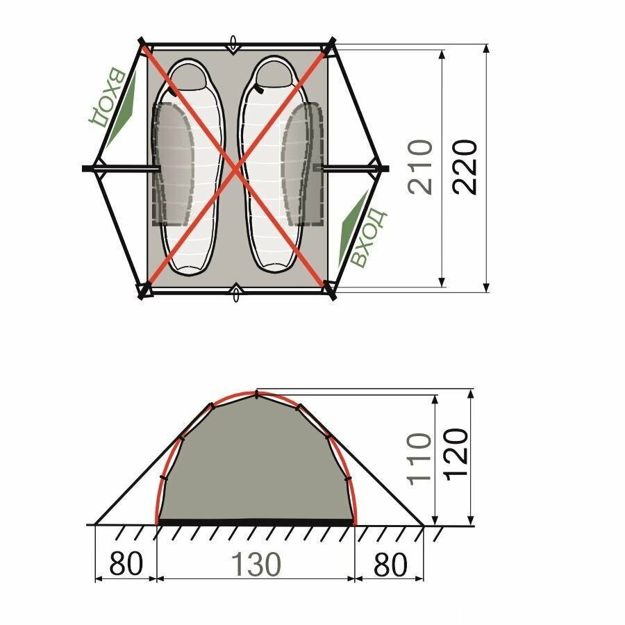 | Дополнительная информация | диаметр дуг: 8.5 мм; длина внутренней палатки: 210 см; ширина внутренней палатки: 120 см; высота внутренней палатки: 115 см |