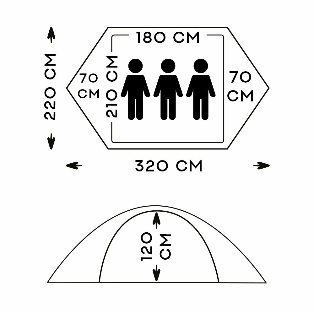 | Габариты внешней палатки(ДxШxВ) | 320x220x120 cм |