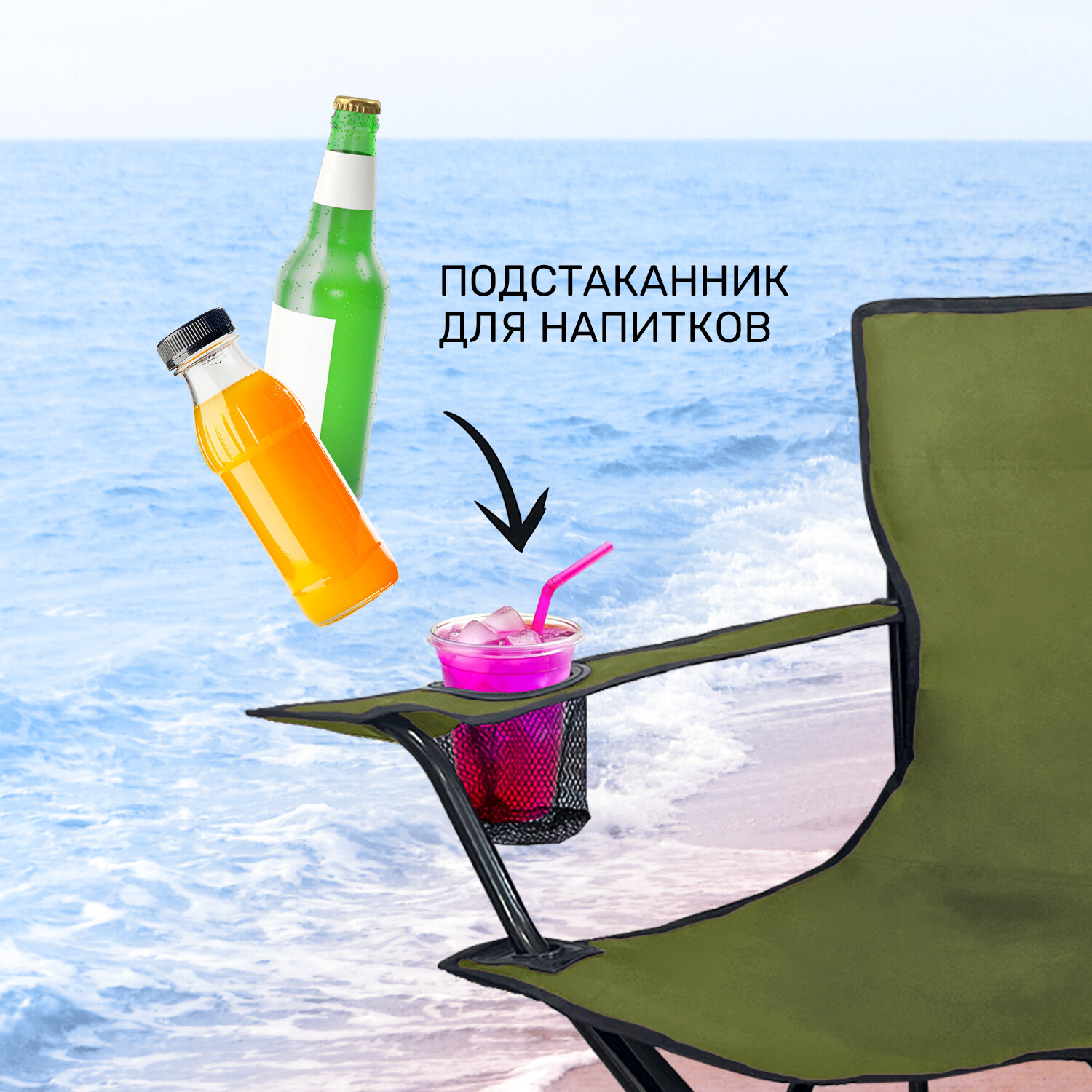 Складной туристический стул рыболовный со спинкой и подлокотниками GetActive SWY-C04-KH хаки. Кресло раскладное для отдыха на природе: пикника, рыбалки, кемпинга, сада, компактный походный стульчик информация: