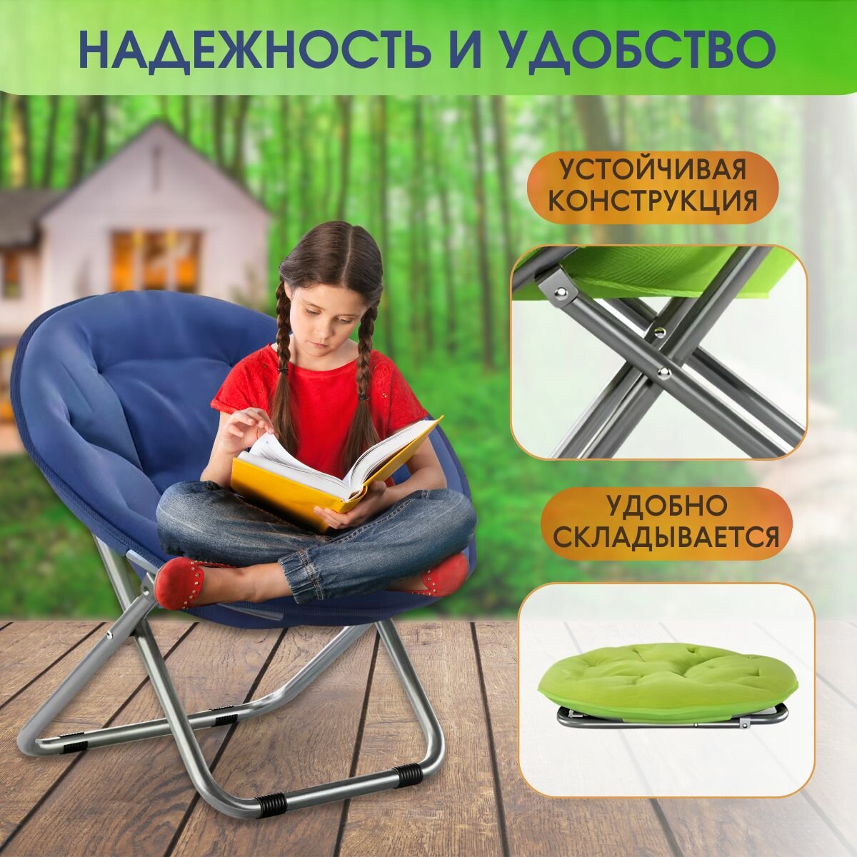 Отзывы на кресло складное туристическое синее, на дачу, на пляж, на пикник, на балкон, кресло-шезлонг, до 120 кг., уютное и большое