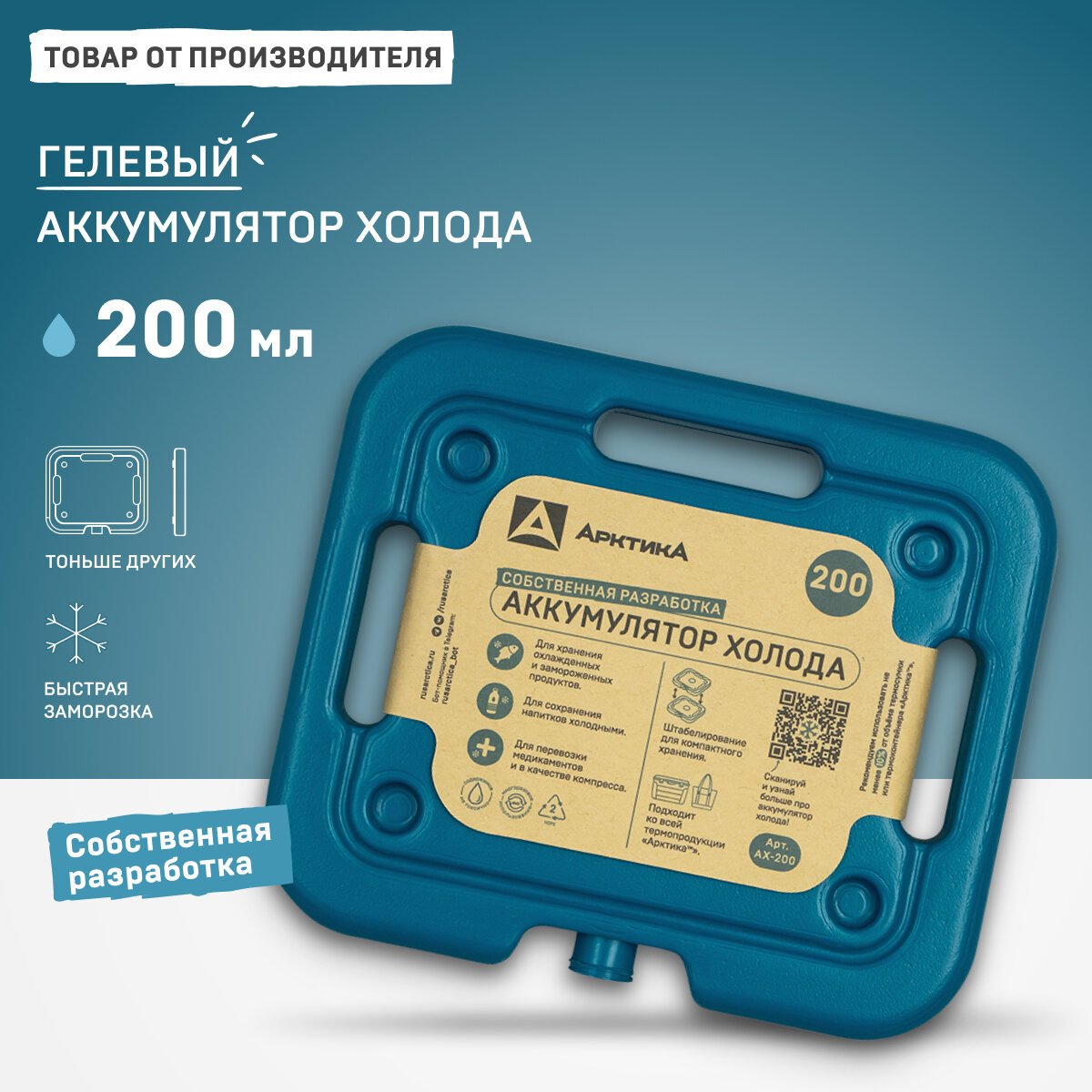 Гелевый аккумулятор холода для термосумки и термоконтейнера Арктика АХ-200, хладоэлемент 200 мл. информация: