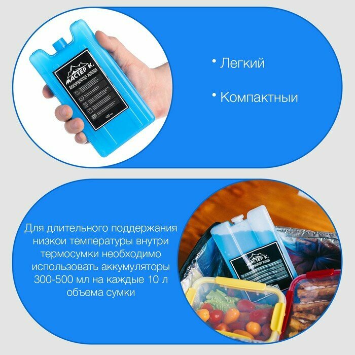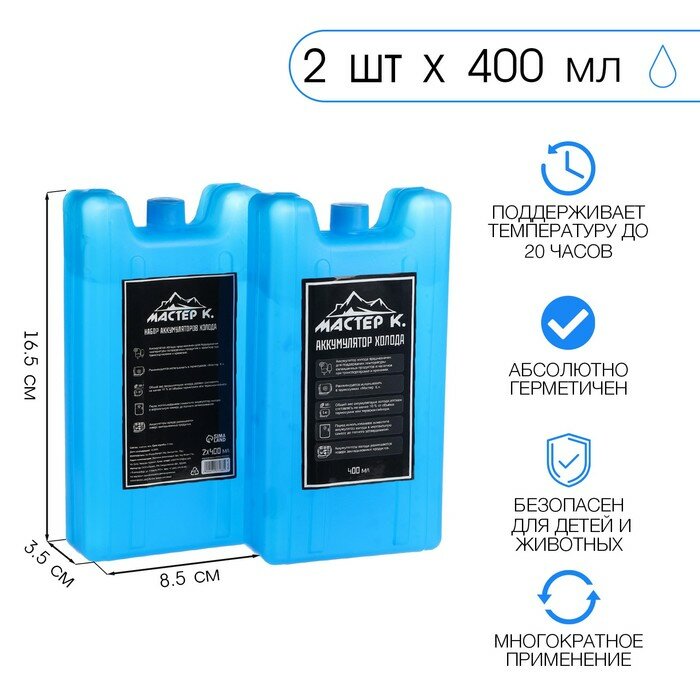 Набор аккумуляторов холода "Мастер К" 2 шт по 400 мл, 16.5 х 8.5 х 3.5 см (арт. 7437133) информация: